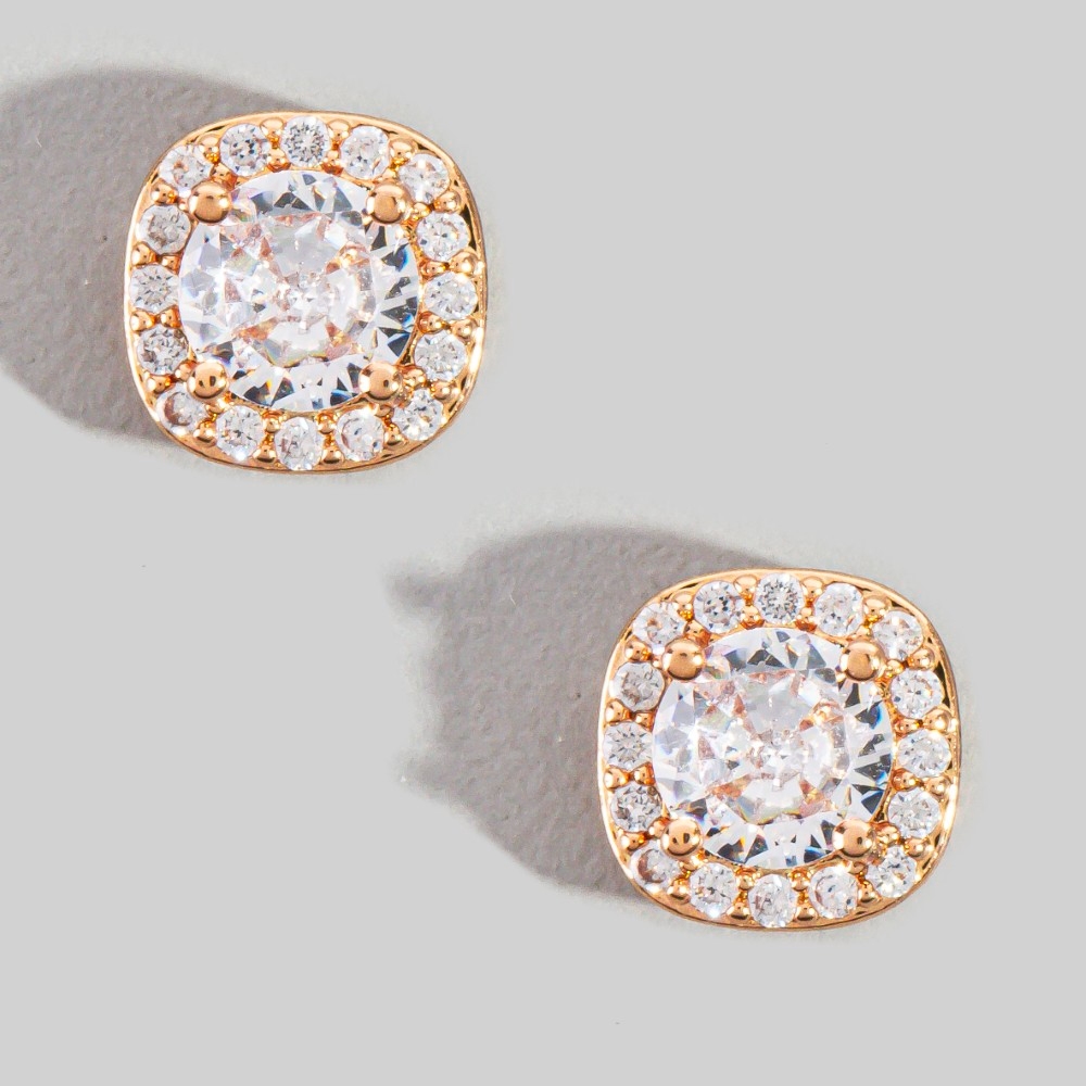 Stay on-trend and stand out from the crowd, this pair of stud earrings exudes a refined square cubic zirconia design. Elevate your style effortlessly with this versatile pair of stud earrings, enhancing the appeal of any ensemble. Available in G, S. This item is sold in packs of 1.