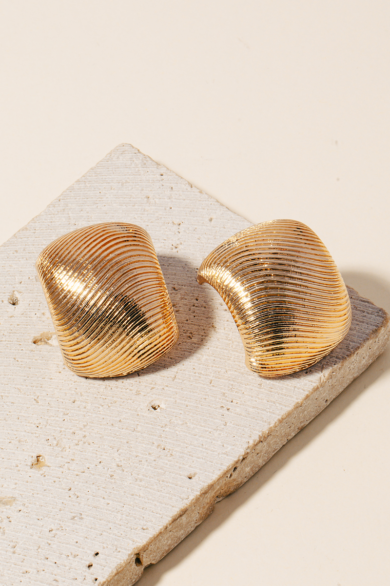 • This is the perfect pair of stud earrings for any occasion pair of stud earrings flaunts a luxurious textured curved shield design. Experience the transformative power of this versatile pair of stud earrings, effortlessly enhancing the overall aesthetic of your outfit. Available in GD. This item is sold in packs of 1.