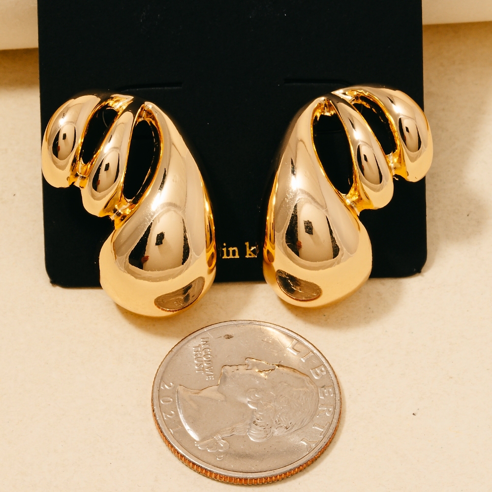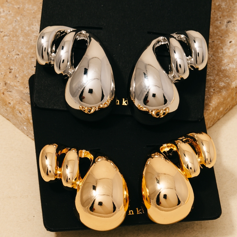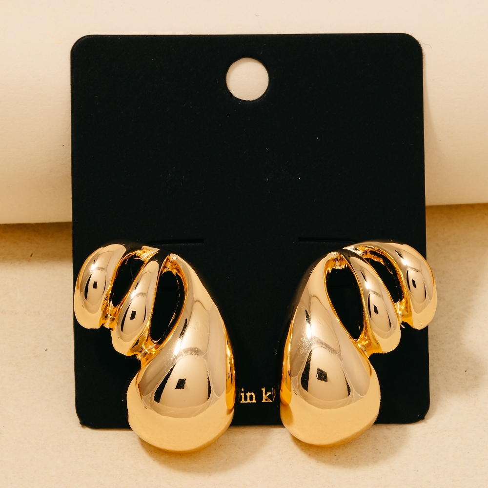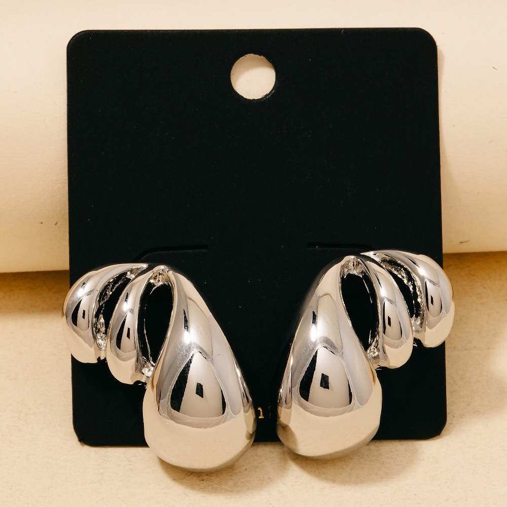 - Elevate your style with something unique and daring, this pair of stud earrings encompasses a grand triple metallic tear layered design. This pair of stud earrings is ideal for both casual and formal events, adding a touch of sophistication to any outfit. Available in G, S. This item is sold in packs of 1.