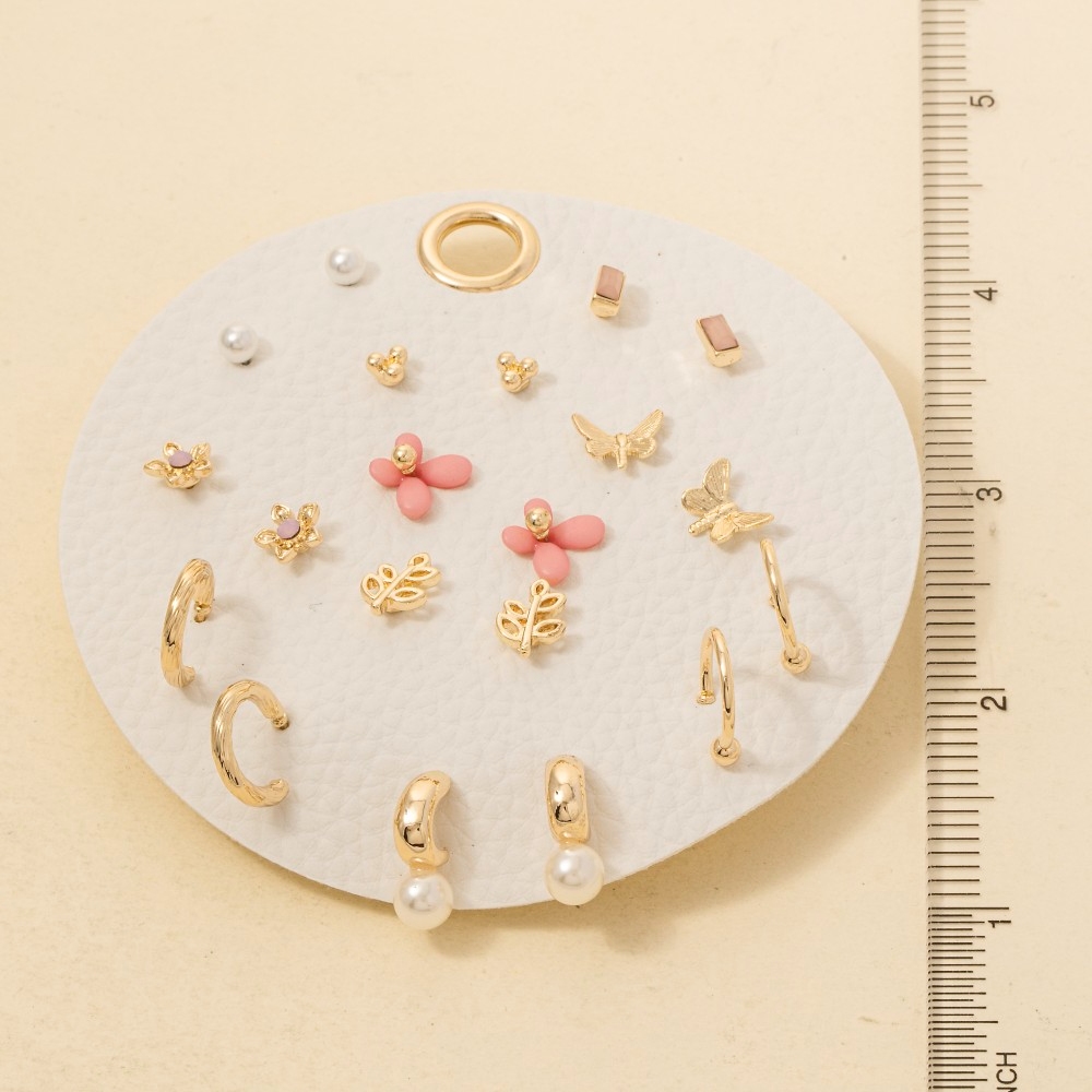 - Add a touch of luxury to any outfit, this pair of earrings showcases a breathtaking ten pair assorted butterfly flower set design. A versatile pair of earrings that's perfect for any occasion, adding a touch of elegance and style to any outfit. Available in GDPNK, GDWHT. This item is sold in packs of 1.