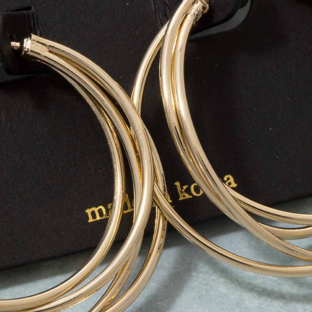This season's hottest pair of hoop earrings, this pair of hoop earrings possesses a fine triple strand design. Perfect for adding a pop of color or texture to any outfit, this pair of hoop earrings is a must-have. This item is sold in packs of 1.