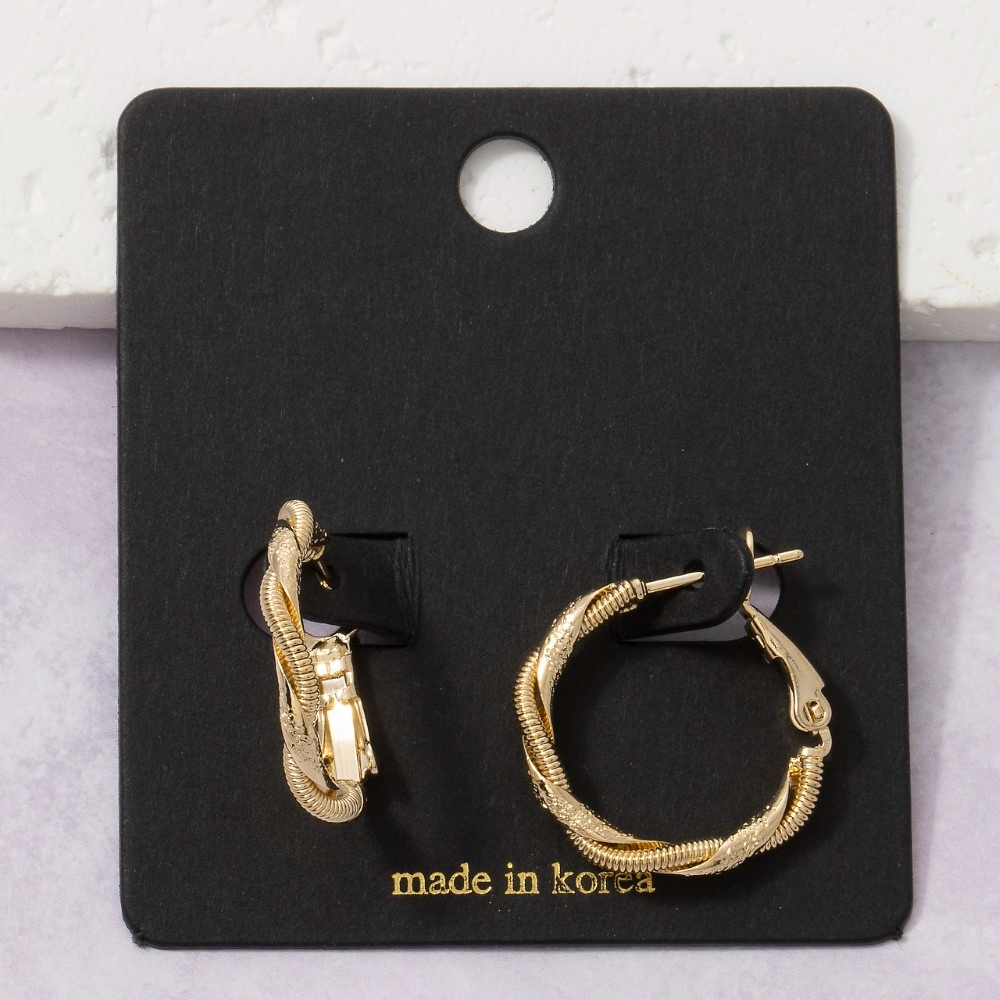 • This season's hottest pair of hoop earrings, this pair of hoop earrings highlights a special twisted double design. A must-have pair of hoop earrings for anyone who loves to add some flair to their outfits. Available in G. This item is sold in packs of 1.