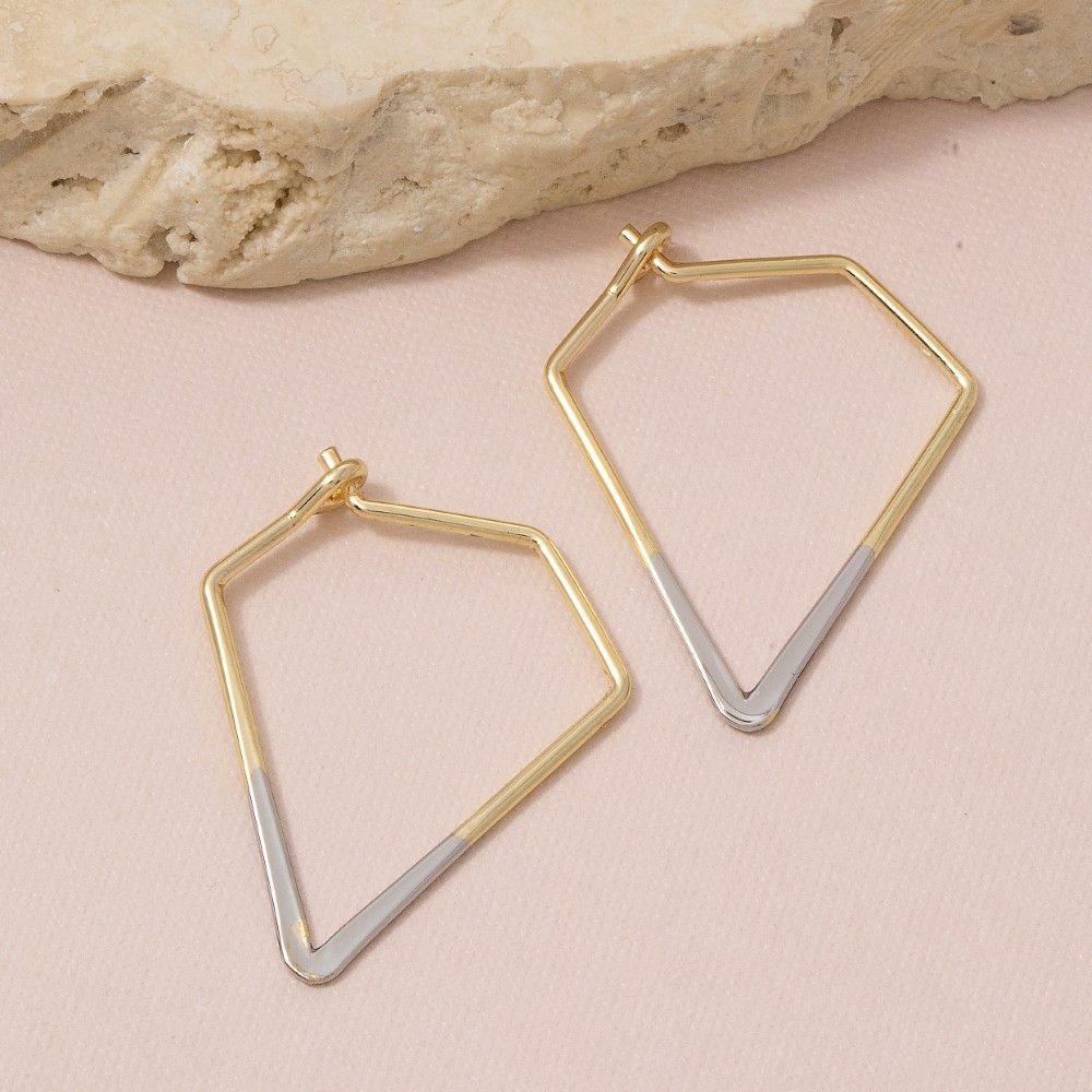 Make a bold statement, this pair of hoop earrings emanates an elegant two tone diamond cut geometric design. Make a lasting impression with this versatile pair of hoop earrings, a subtle yet impactful addition to your fashion repertoire. This item is sold in packs of 1.