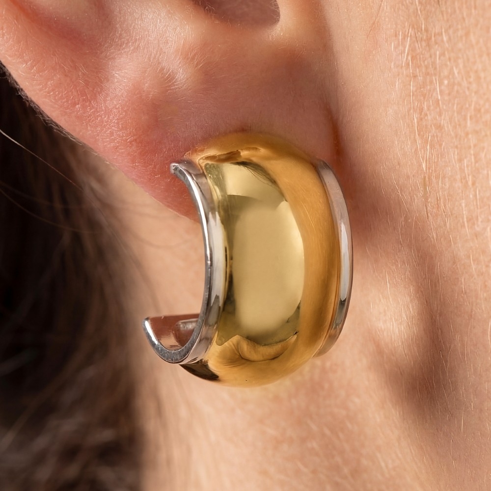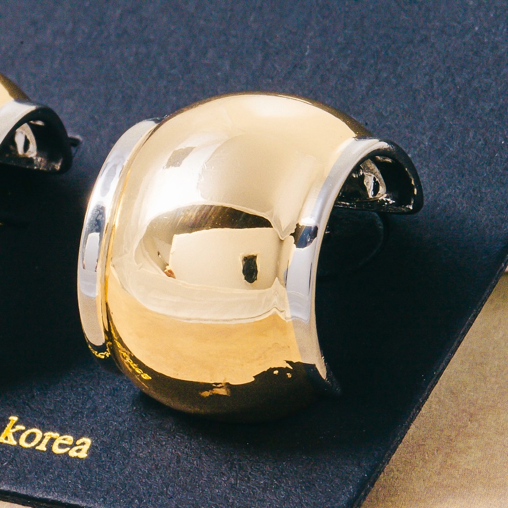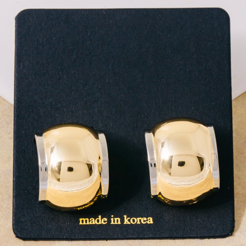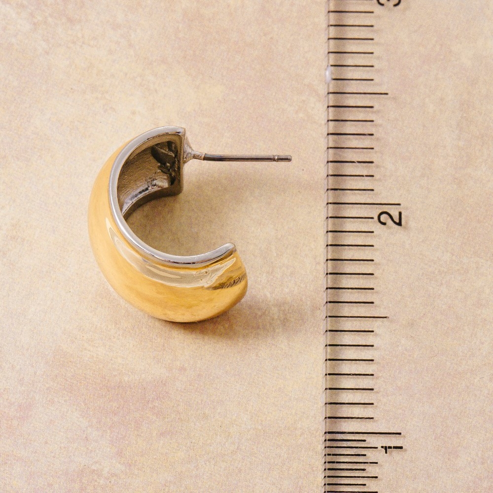 A bold and daring choice, perfect for those who want to stand out from the crowd, this pair of hoop earrings emanates an elegant two tone dome shield design. Perfect for dressing up your favorite outfit, this pair of hoop earrings is a must-have. Available in TT. This item is sold in packs of 1.
