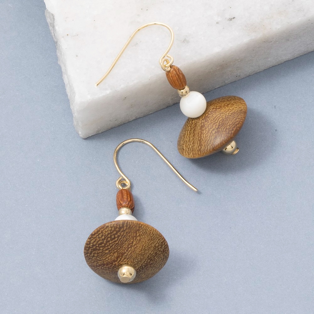 An instant wardrobe staple, this pair of drop earrings exudes a refined wood bead natural disc design. Add a dash of sophistication to your look with this versatile pair of drop earrings, a must-have for fashion enthusiasts. Available in GOLD. This item is sold in packs of 1.