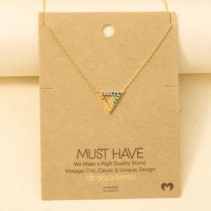 Gold Dipped Pave Triangle Pendant Necklace