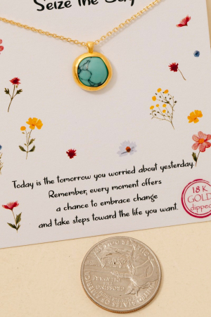 Stainless Steel Stone Stud Coin Pendant Necklace