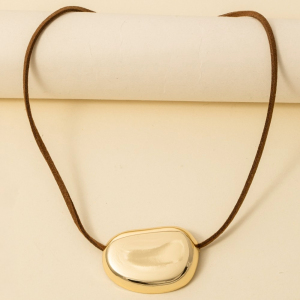 Gold Dipped Oval Pendant Corded Necklace