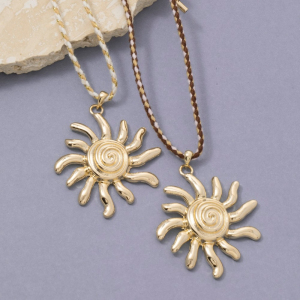 Adjustable Cotton Cord Sun Pendant Necklace