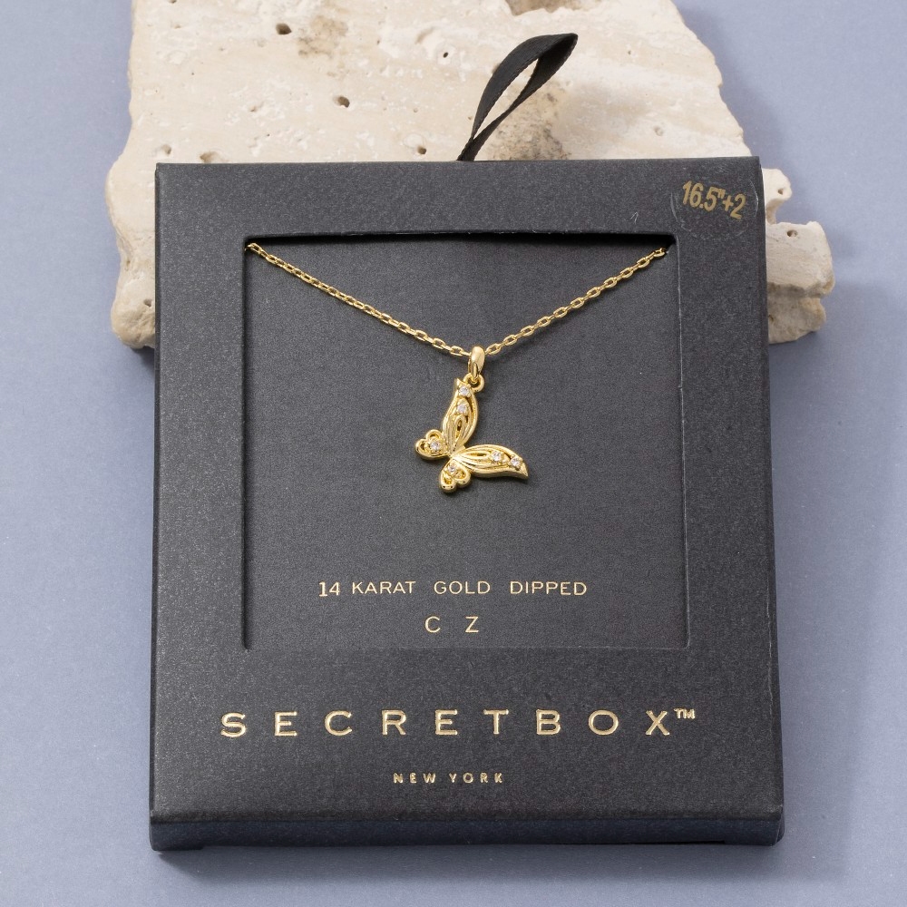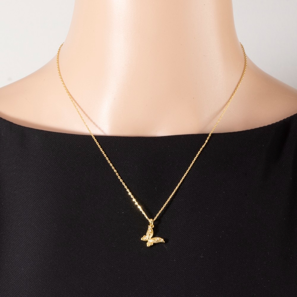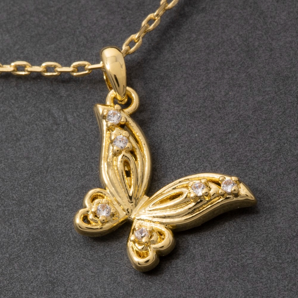A contemporary masterpiece, this pendant necklace evokes a captivating 14k gold dipped cubic zirconia butterfly design. Add some personality to your outfit with this stylish pendant necklace. Available in GD. This item is sold in packs of 1.