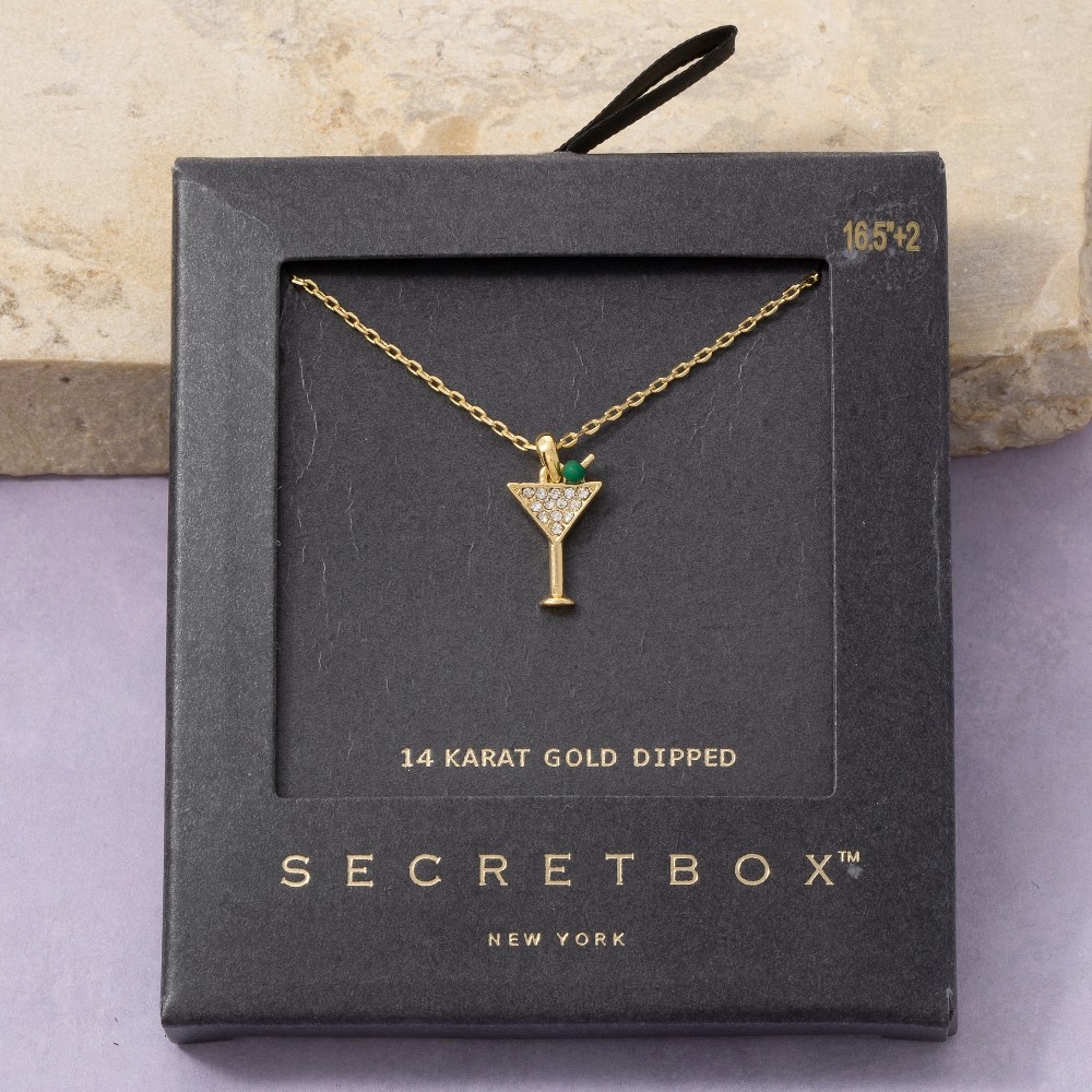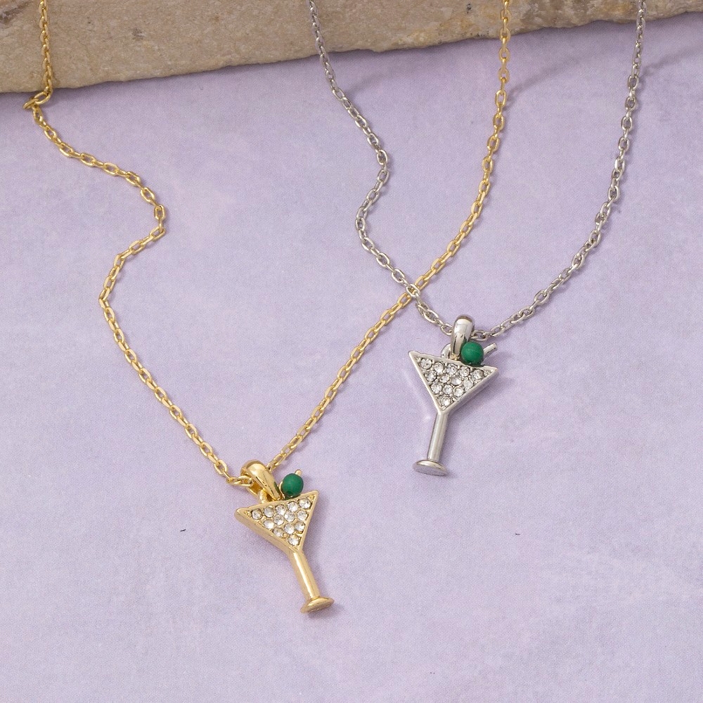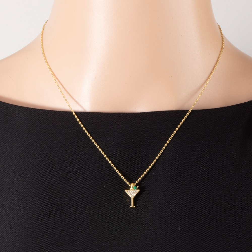 Stay ahead of the fashion curve, this necklace flaunts a luxurious 14k gold dipped cubic zirconia martini charm design. A must-have necklace for anyone who loves to add some flair to their outfits. Available in GD, WG. This item is sold in packs of 1.