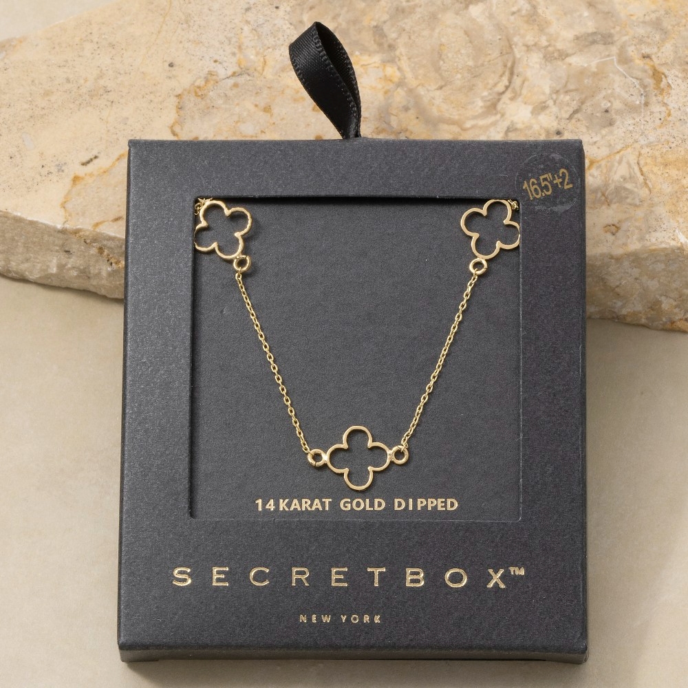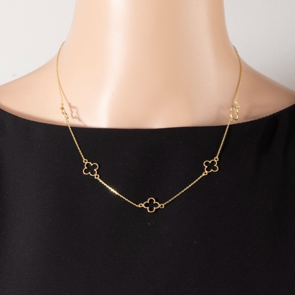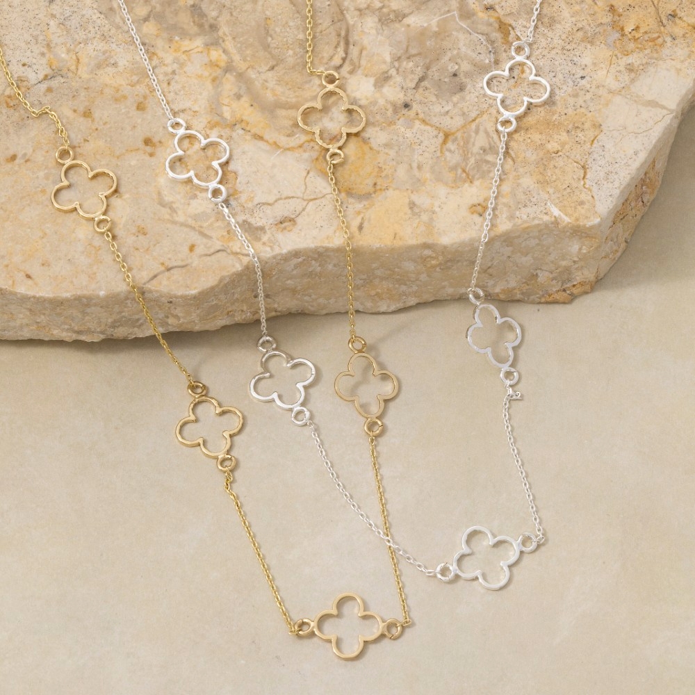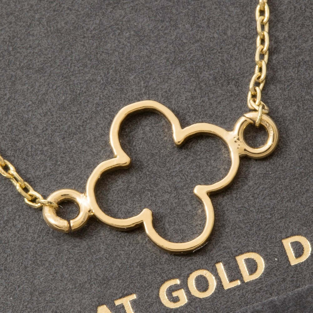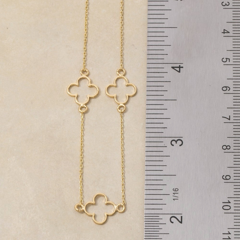 Sleek and modern, this necklace showcases a breathtaking 14k gold dipped open clover station design. This item is ideal for those who want to add some personality to their wardrobe without being too bold. Available in GD, WG. This item is sold in packs of 1.