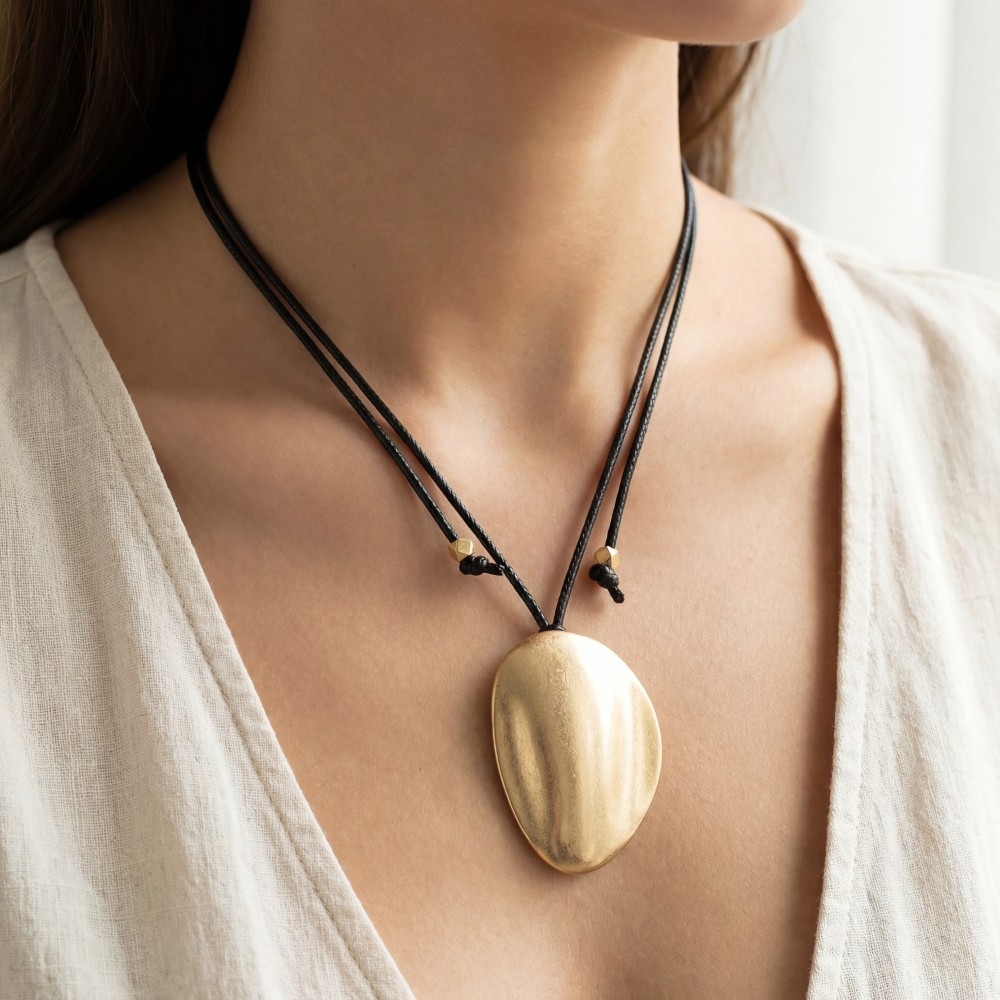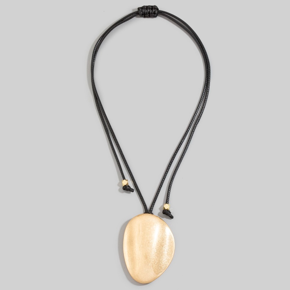 - A bold and daring choice that is sure to impress, this pendant necklace radiates a sleek adjustable cord warped metal disc design. Upgrade your fashion game with this versatile pendant necklace, a timeless addition that complements any outfit seamlessly. Available in G, S. This item is sold in packs of 1.