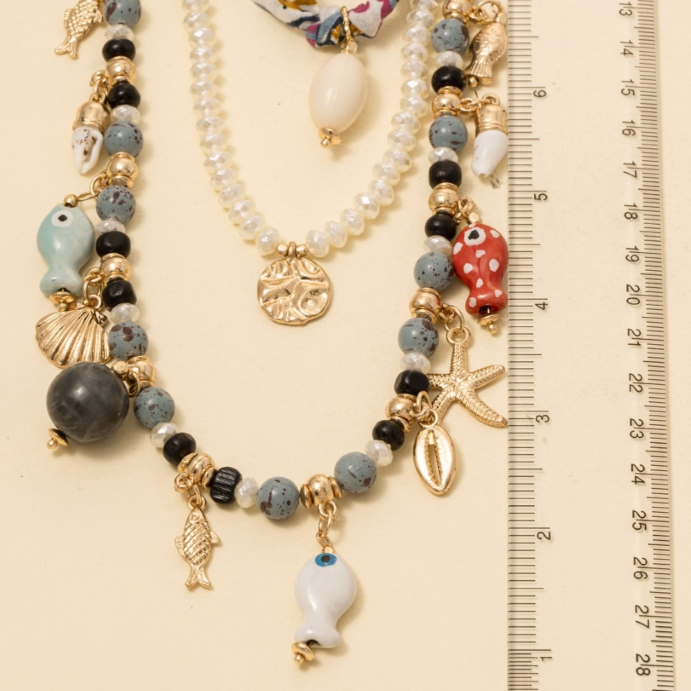 Seashell Beaded Charm Necklace Set