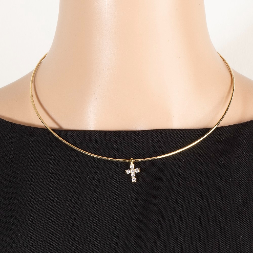 - This piece is the epitome of sophistication and elegance, this pendant necklace introduces an exceptional gold dipped cubic zirconia studded cross pendant choker necklace design. Unleash the power of style with this versatile pendant necklace, perfect for enhancing the charm of your wardrobe. Available in GOLD. This item is sold in packs of 1.