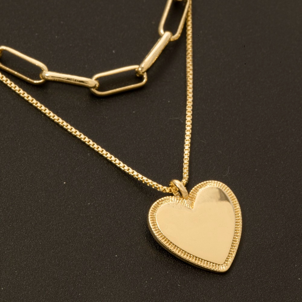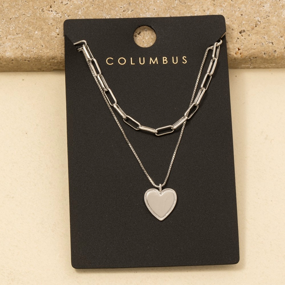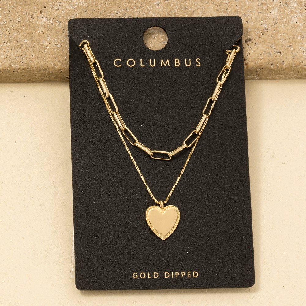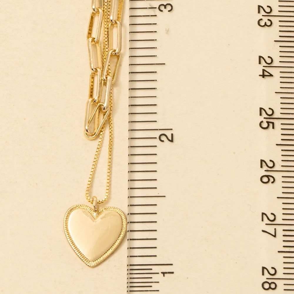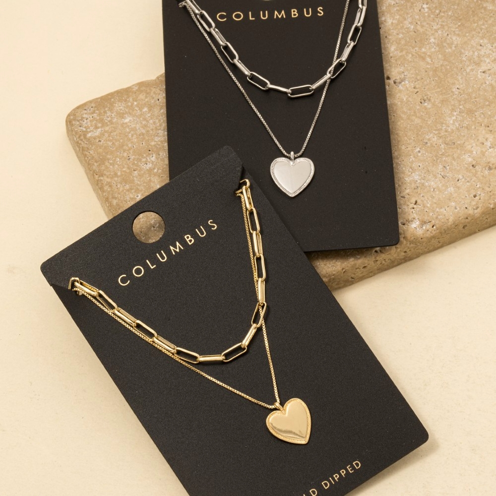 • This season's must-have chain necklace, this chain necklace features a distinct gold dipped heart pendant layered design. This chain necklace is a great way to add some glamour and sophistication to your outfit. Available in GOLD, 2SILVER. This item is sold in packs of 1.