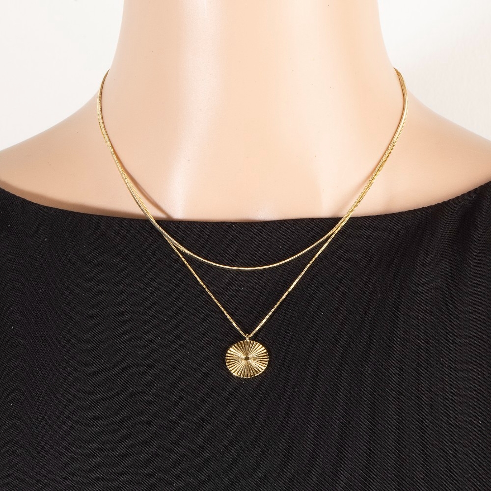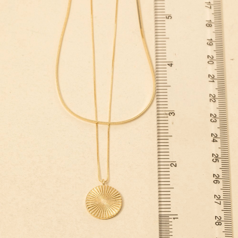 • A classic design with a contemporary twist, this necklace features a distinct gold dipped layered disc pendant design. Infuse your ensemble with a touch of sophistication using this versatile necklace, a game-changer in the world of fashion. Available in GOLD. This item is sold in packs of 1.