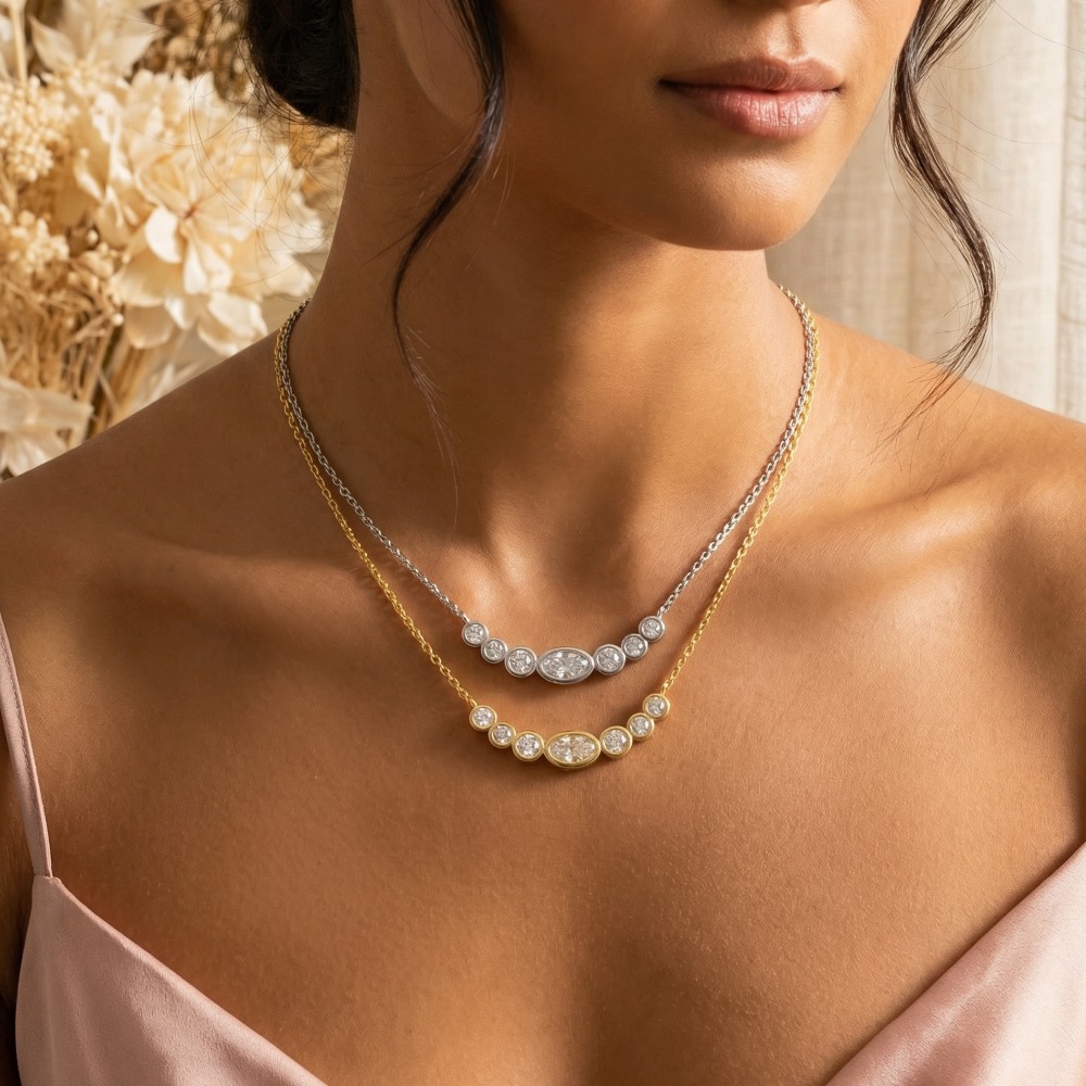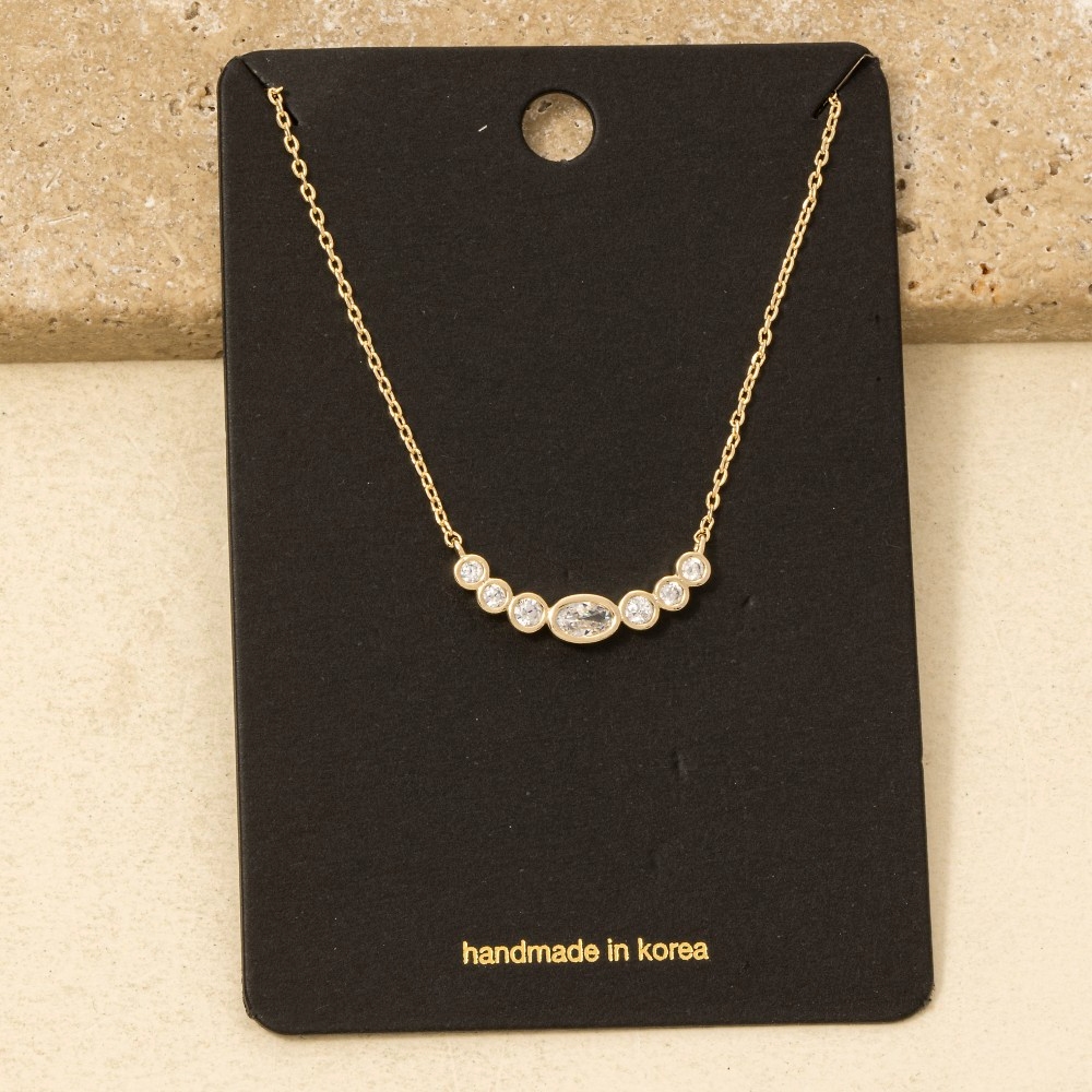 • This necklace is made with 70% Brass and 30% Cubic Zirconia.