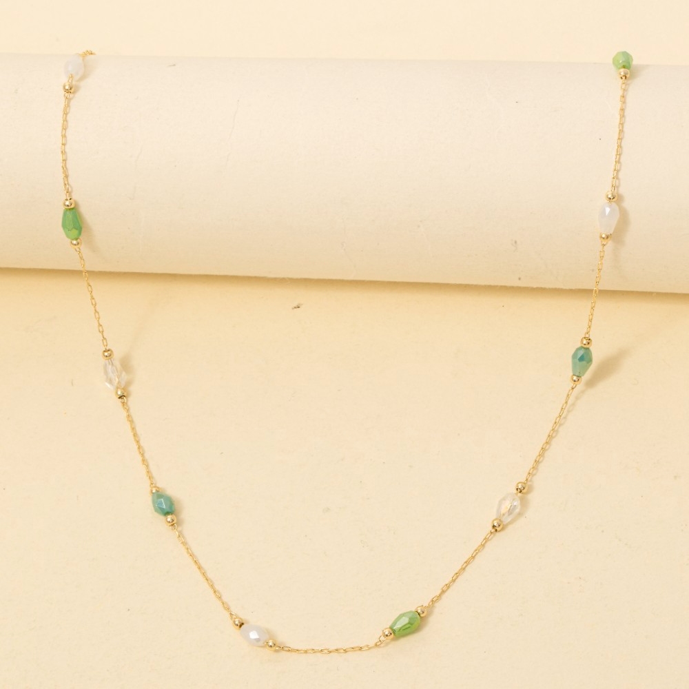 • This chain necklace is made with 50% Glass 50% 5Brass.