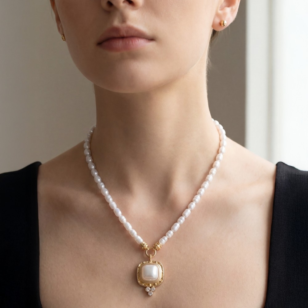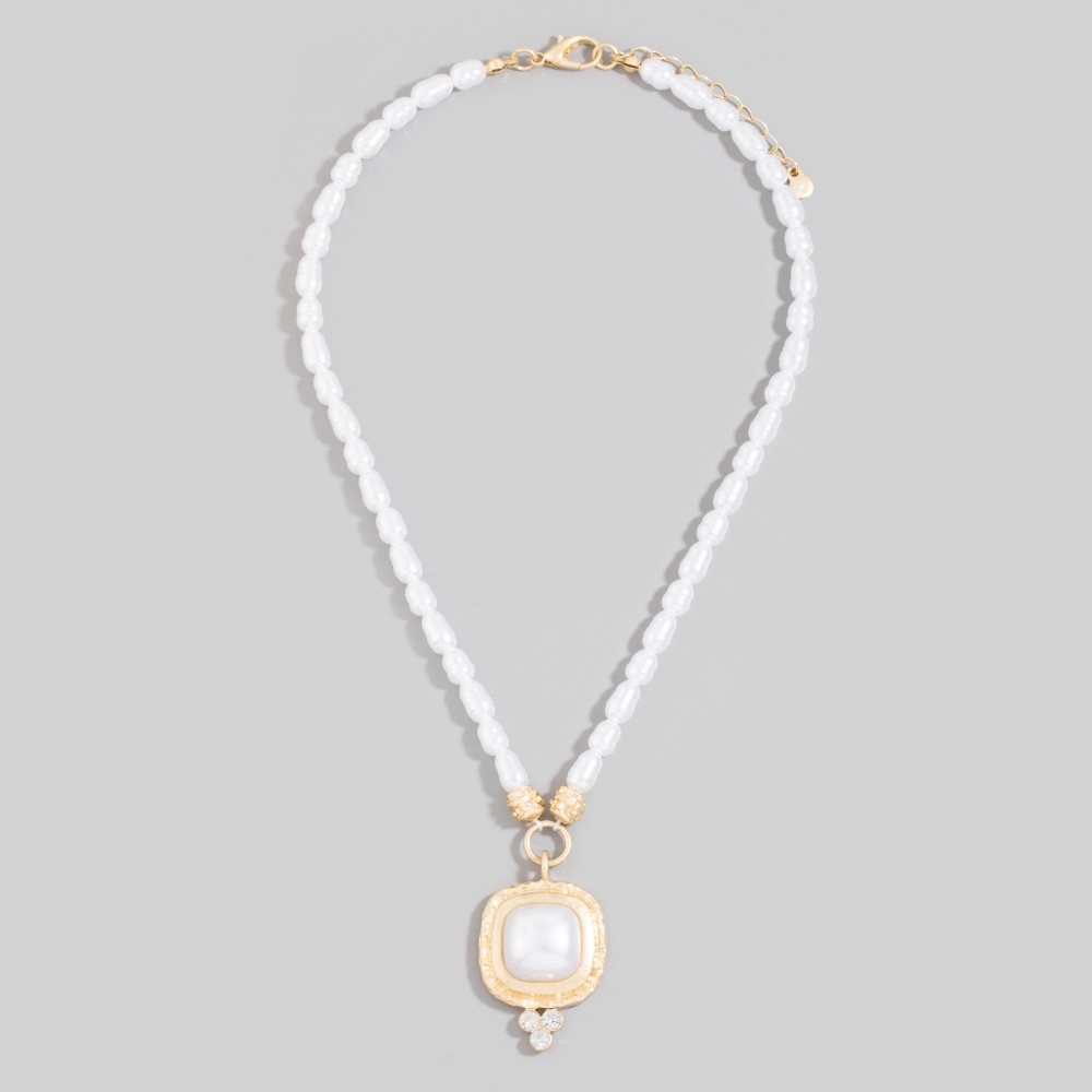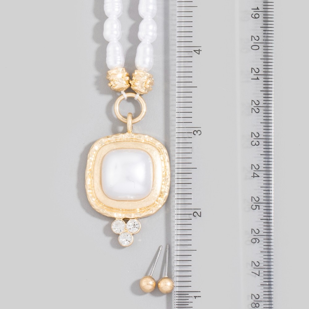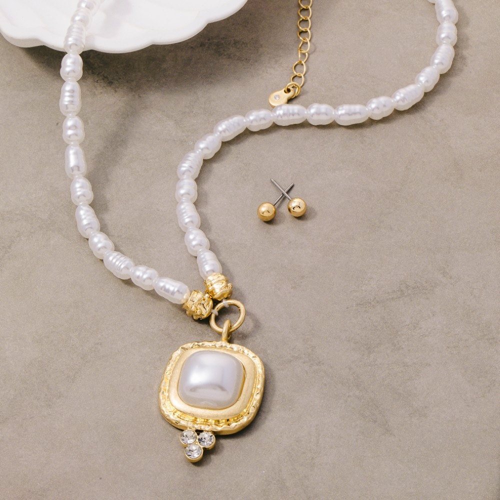 • Unleash your inner fashionista, this necklace set contains a special pearl beaded square pearl pendant design. A stylish necklace set that's perfect for complementing any outfit you wear. Available in PL. This item is sold in packs of 1.