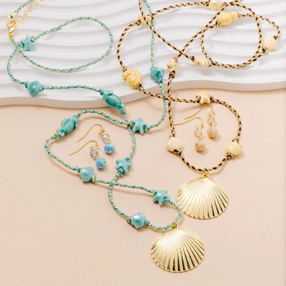 - Elevate any look, this necklace set brings a one-of-a-kind sealife charms cord design. This item is ideal for those who want to add some personality to their outfits without being too bold. Available in AQ, NA. This item is sold in packs of 1.