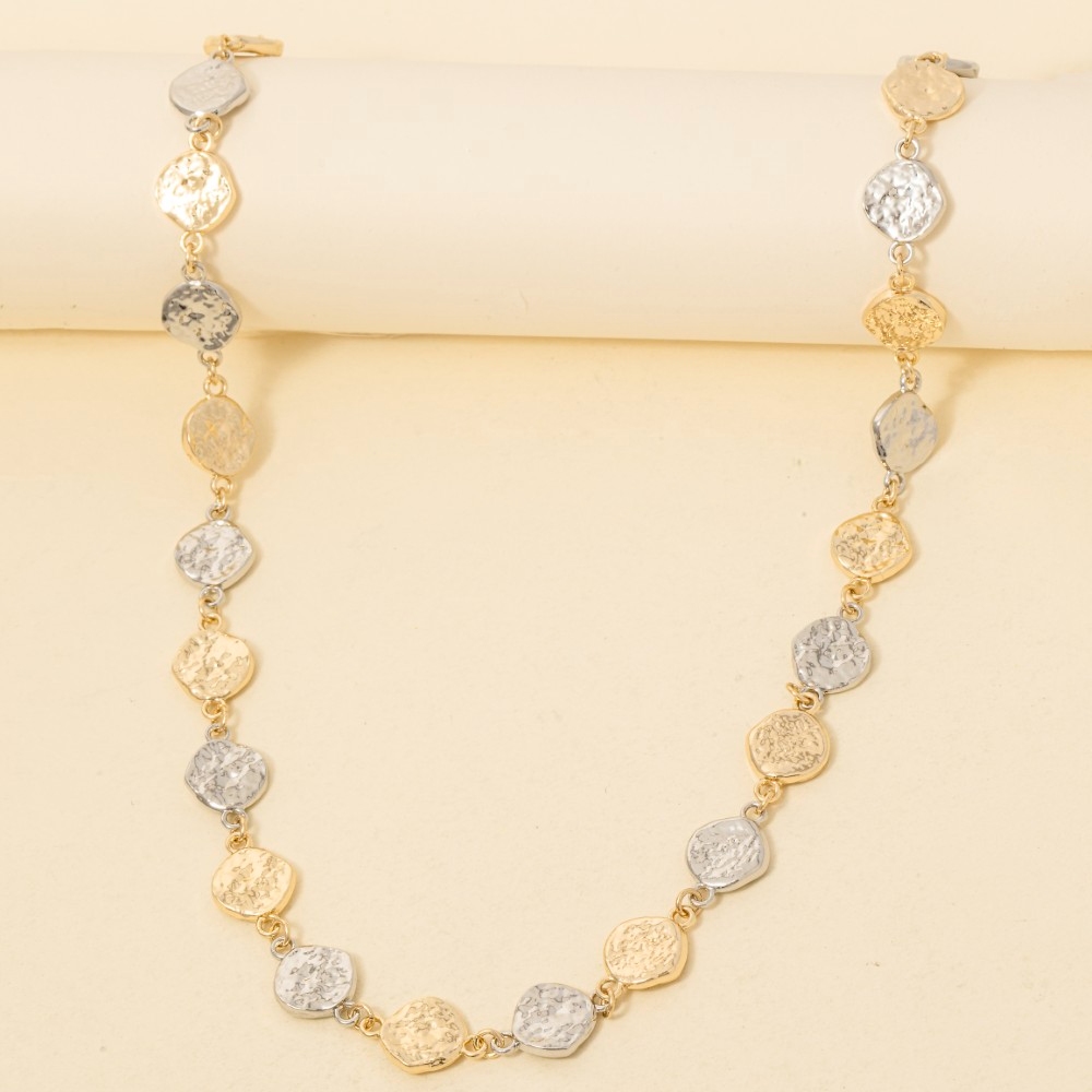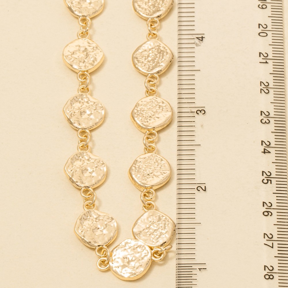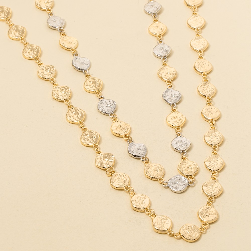 - Add some edge to your look, this chain necklace features an exceptional small textured coins long design. Add some personality to your outfit with this stylish chain necklace. Available in GD, GDRH. This item is sold in packs of 1.