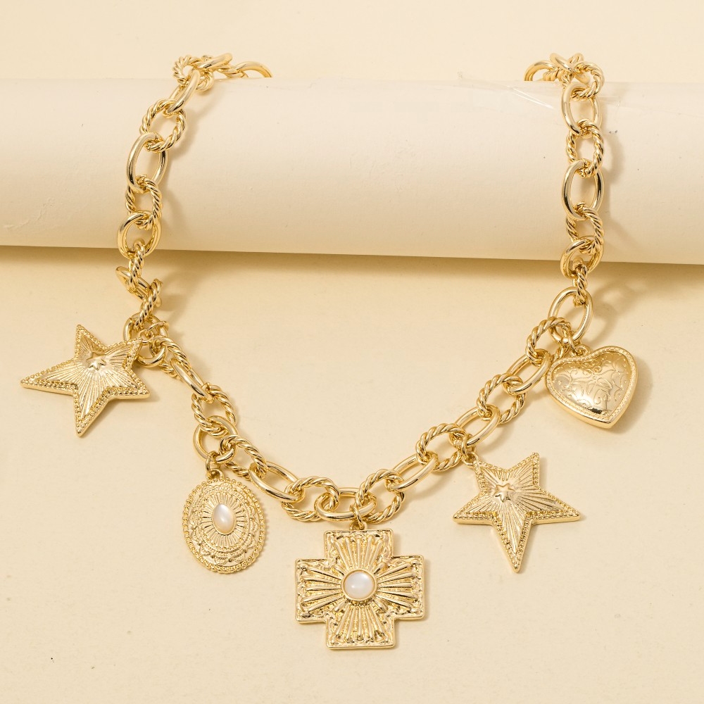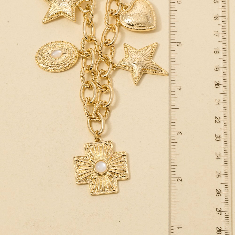 • The epitome of sophistication and style, this chain necklace presents a striking western charms design. This chain necklace is ideal for both casual and formal events, adding a touch of sophistication to any outfit. Available in G. This item is sold in packs of 1.