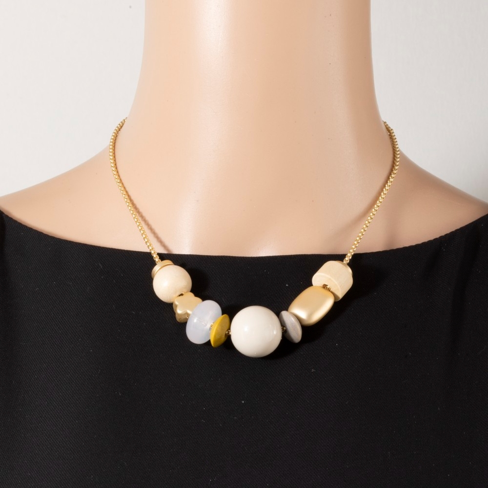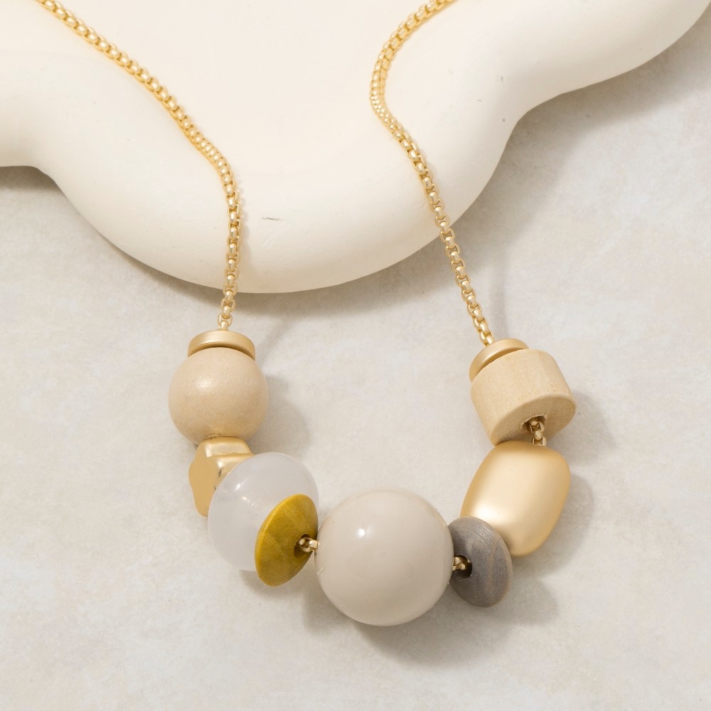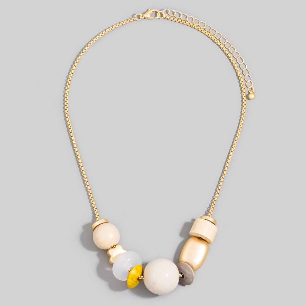 Mixed Resin And Metallic Beads Tube Chain Necklace
