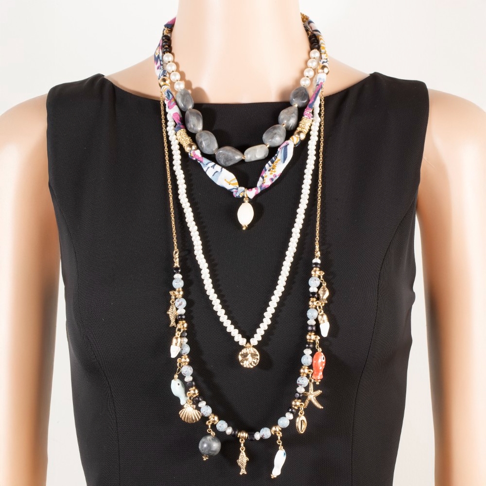 Effortlessly chic and always on-trend, this layered necklace evokes a captivating assorted sealife charms design. Elevate your fashion game with this versatile layered necklace, seamlessly integrating into your signature style. Available in BL. This item is sold in packs of 1.
