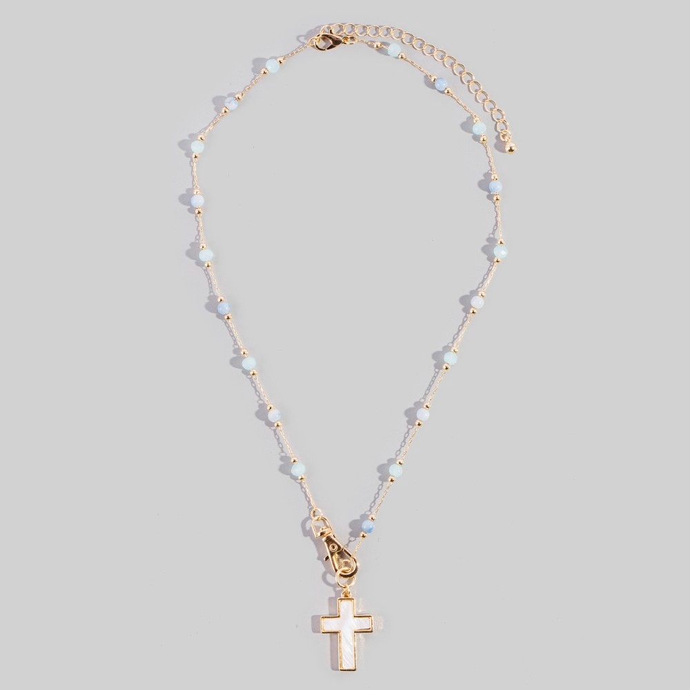 Uniquely designed and endlessly stylish, this pendant necklace features an exceptional beaded chain mother of pearl cross design. This pendant necklace is the perfect finishing touch to any outfit, adding a touch of sophistication and glamour. Available in GDLB. This item is sold in packs of 1.