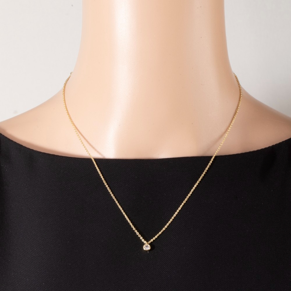A timeless piece that will never go out of style, this pendant necklace offers a remarkable bezel cubic zirconia solitaire design. Redefine your wardrobe with this versatile pendant necklace, a timeless addition that brings an air of sophistication to any look. Available in G, S. This item is sold in packs of 1.