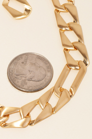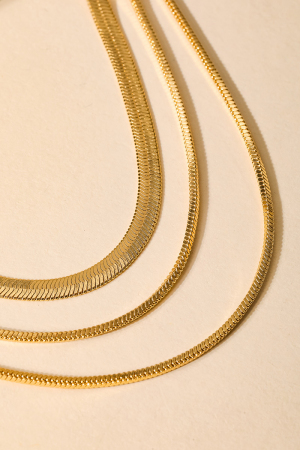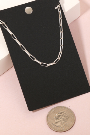 Brushed Metallic Flat Rectangle Classic Chain Necklace Set