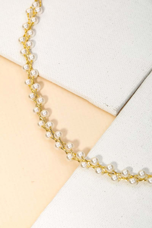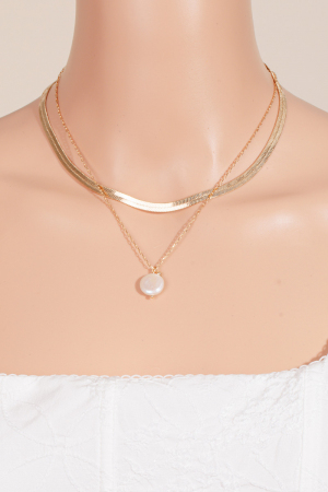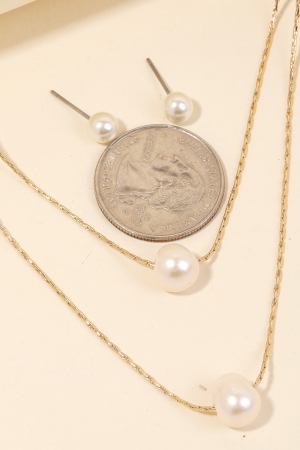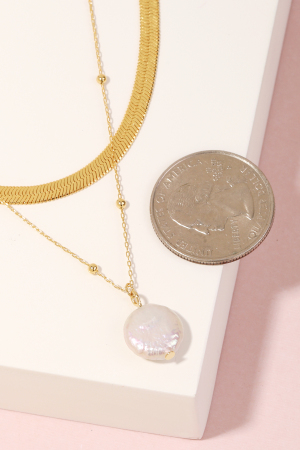 Dainty Layered Chain Pearl Bead Charm Necklace