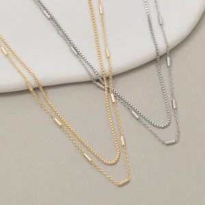Secret Box Stainless Steel Layered Herringbone Chain Necklace