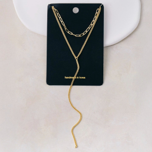 Secret Box Stainless Steel Double Hearts Y Chain Necklace