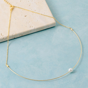 Dainty Chain Wire Pearl Charms Choker Necklace