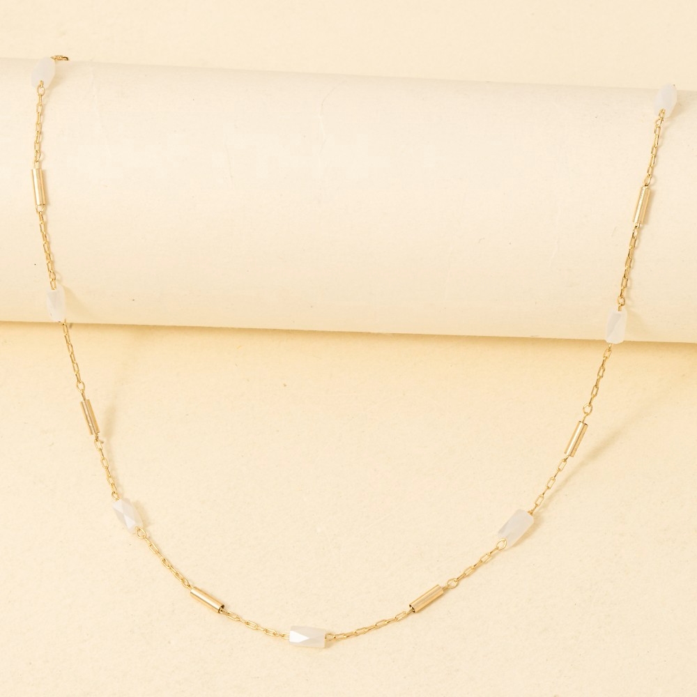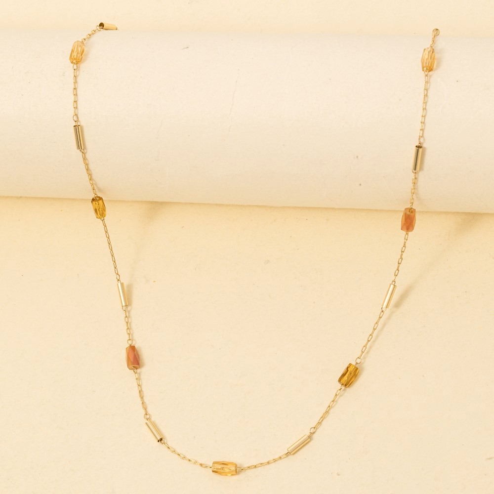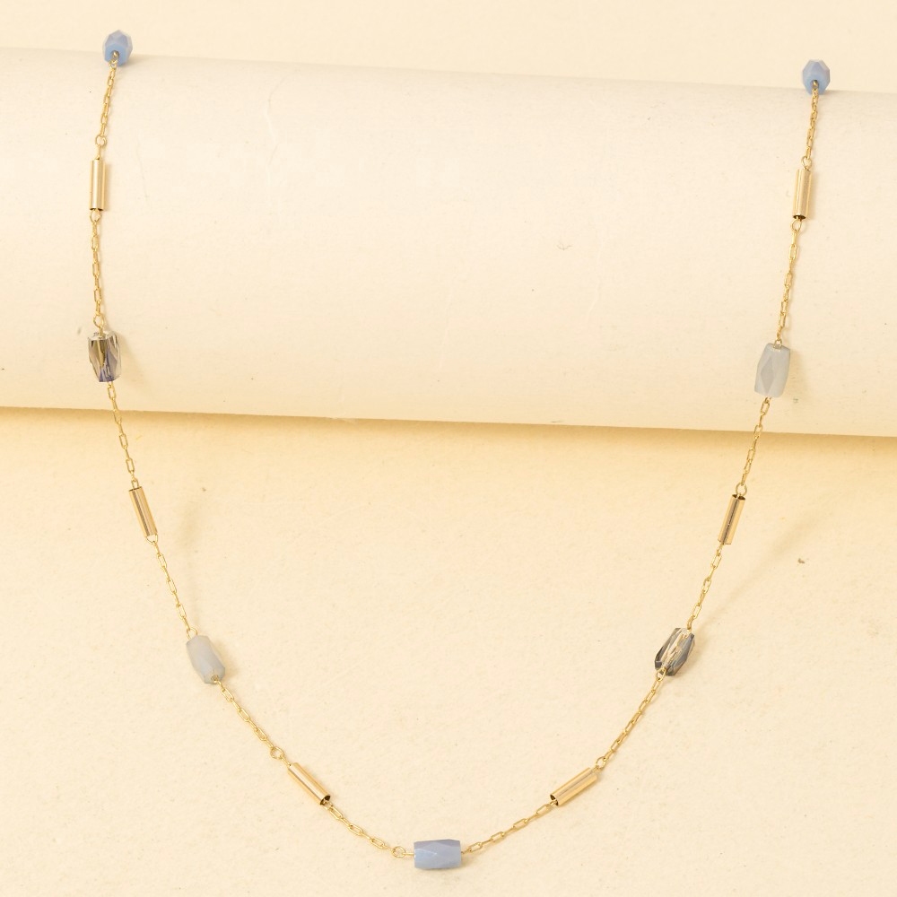 • Elevate any look, this chain necklace brings a one-of-a-kind bar and faceted gem station design. This item is perfect for adding some color and vibrancy to any outfit. Available in GDMBK, GDMBL, GDMNT, GDWH. This item is sold in packs of 1.