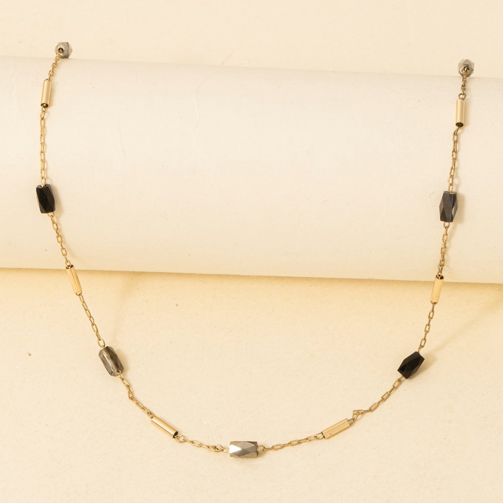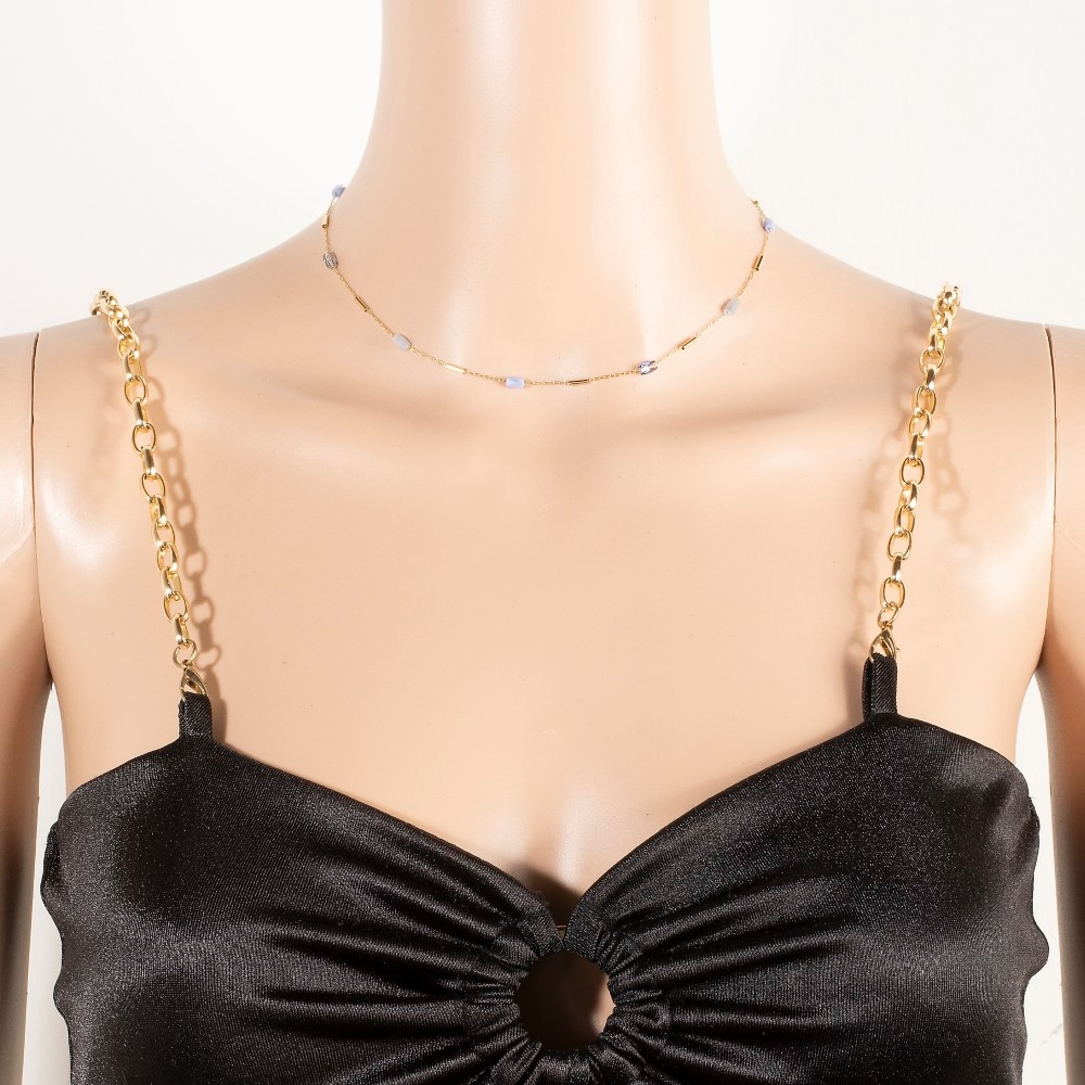 • This chain necklace is made with 70% Brass and 30% Glass.
