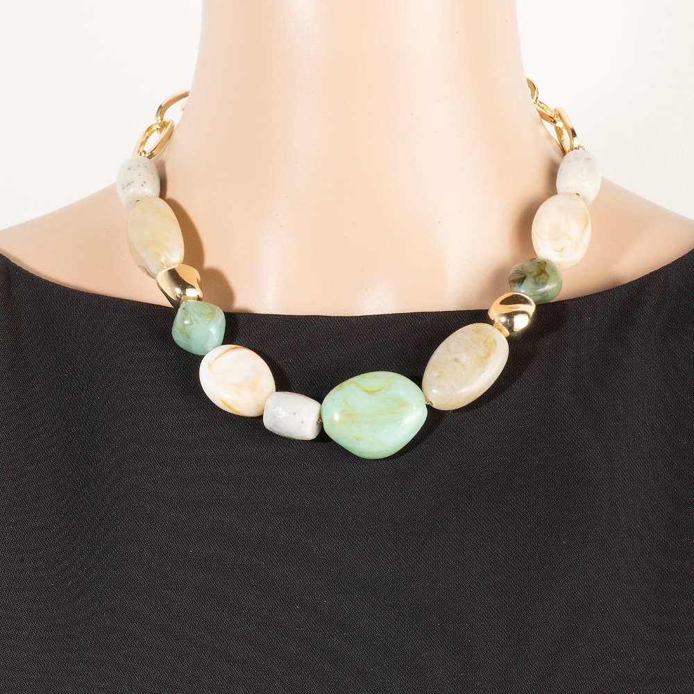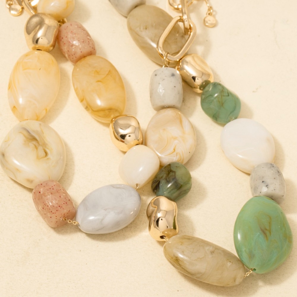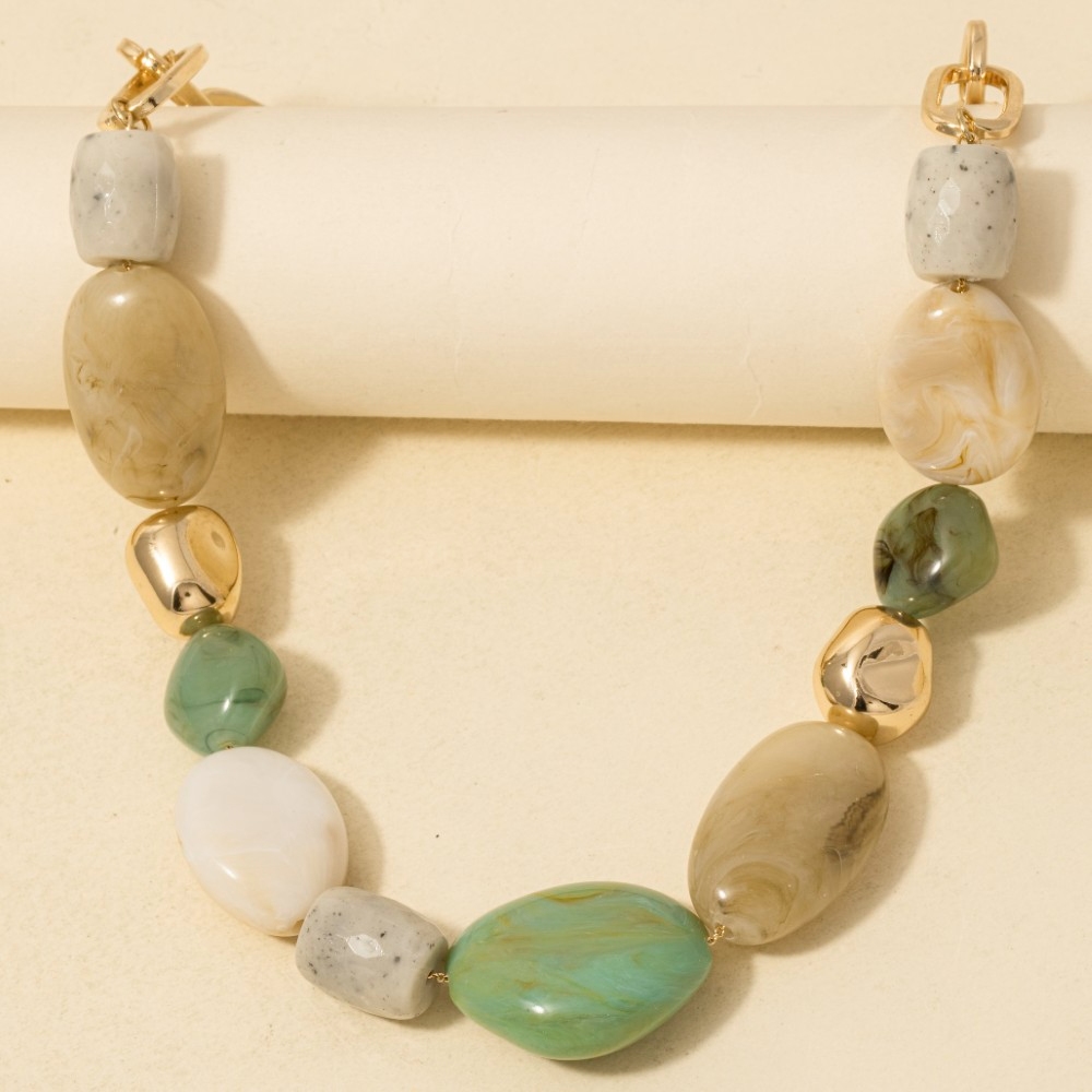 • Add a touch of luxury to any outfit, this chain necklace radiates a sleek chunky acrylic and metallic beads design. Embrace fashion flexibility with this versatile chain necklace, designed to effortlessly enhance the sophistication of any outfit. Available in IV, MI. This item is sold in packs of 1.
