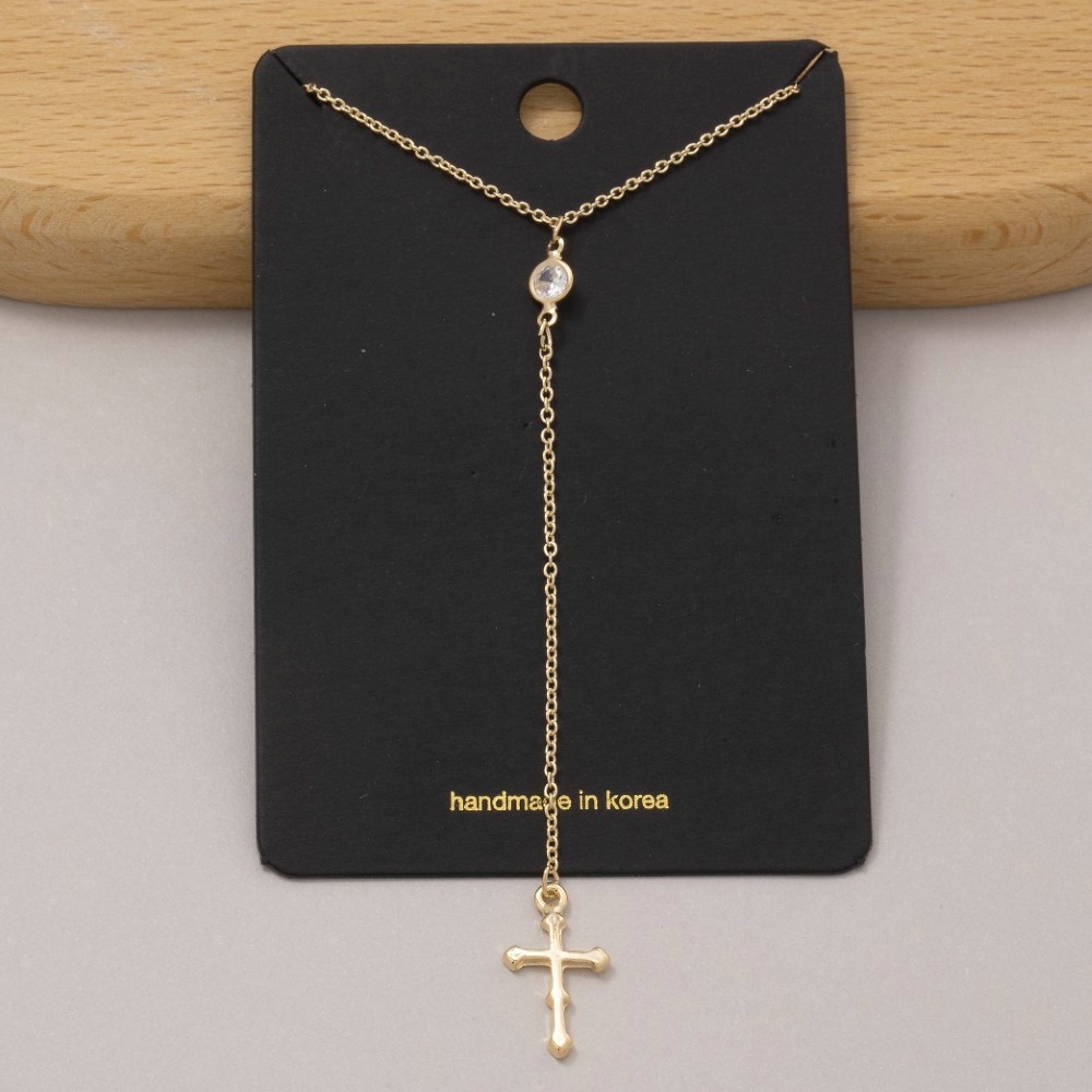 • A classic design with a modern twist, this chain necklace boasts a magnificent cross pendant y design. Redefine your fashion identity with this versatile chain necklace, a timeless piece that complements any wardrobe. Available in G, S. This item is sold in packs of 1.