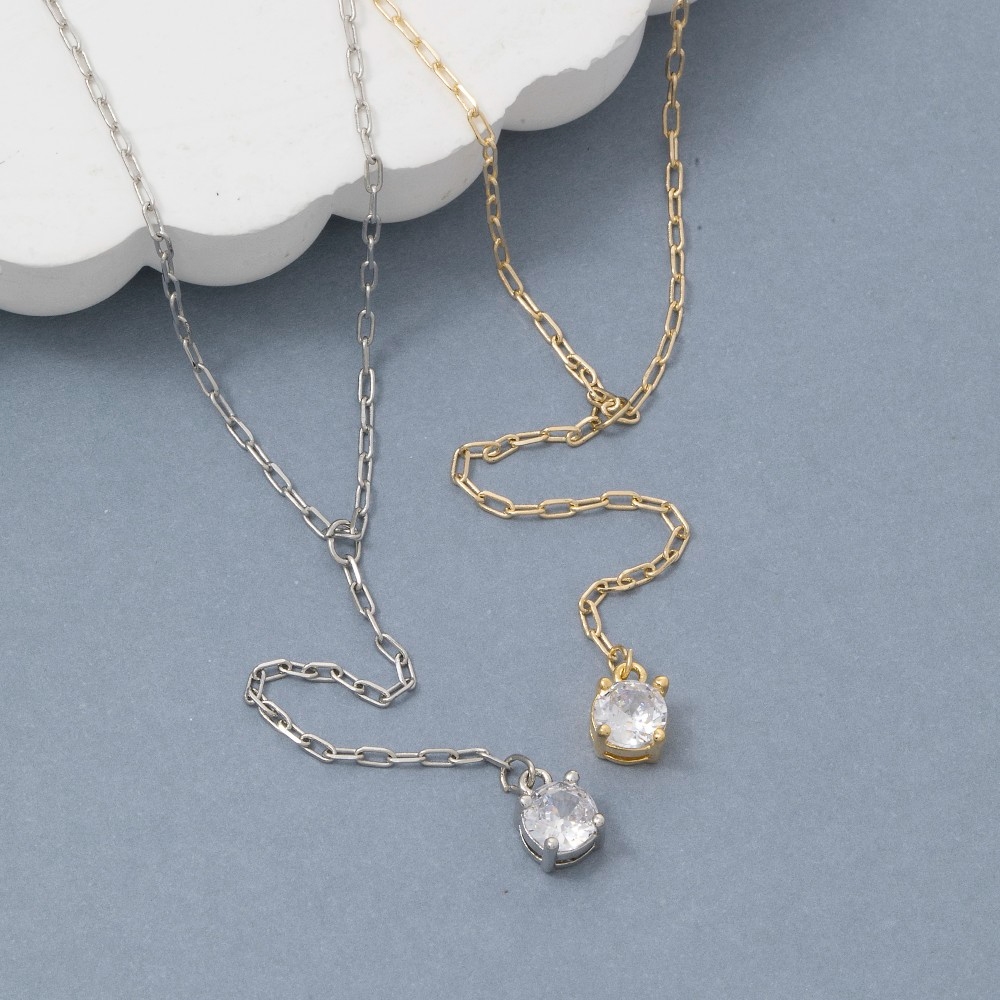 Effortlessly stylish and always on-trend, this chain necklace incorporates a flawless cz pendant y design. This item is a great way to add some texture and dimension to any outfit. Available in G, S. This item is sold in packs of 1.