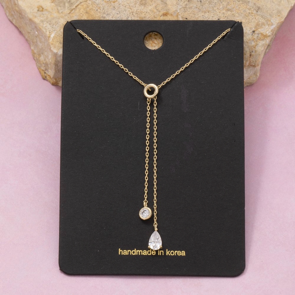 • The perfect way to add some edge to your look, this chain necklace includes a stunning cz teardrop charms y design. Perfect for adding some texture and dimension to any outfit, this chain necklace is a must-have. Available in G, S. This item is sold in packs of 1.