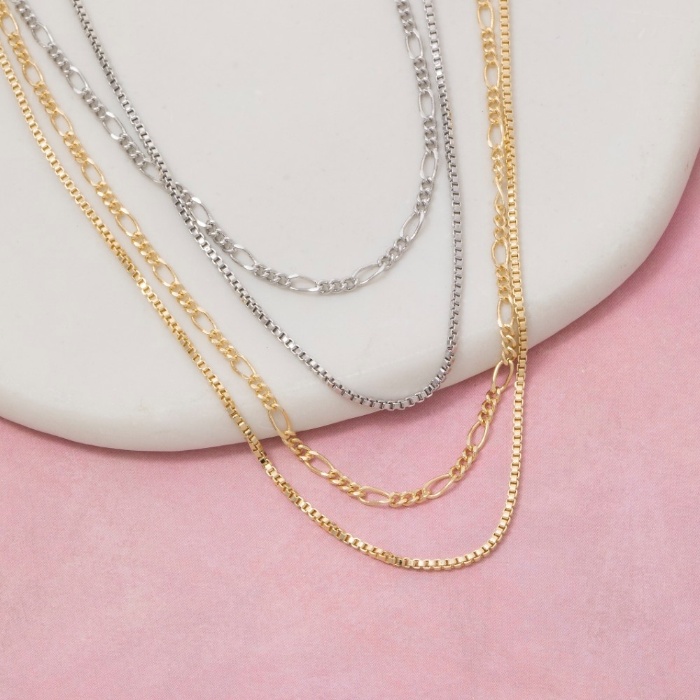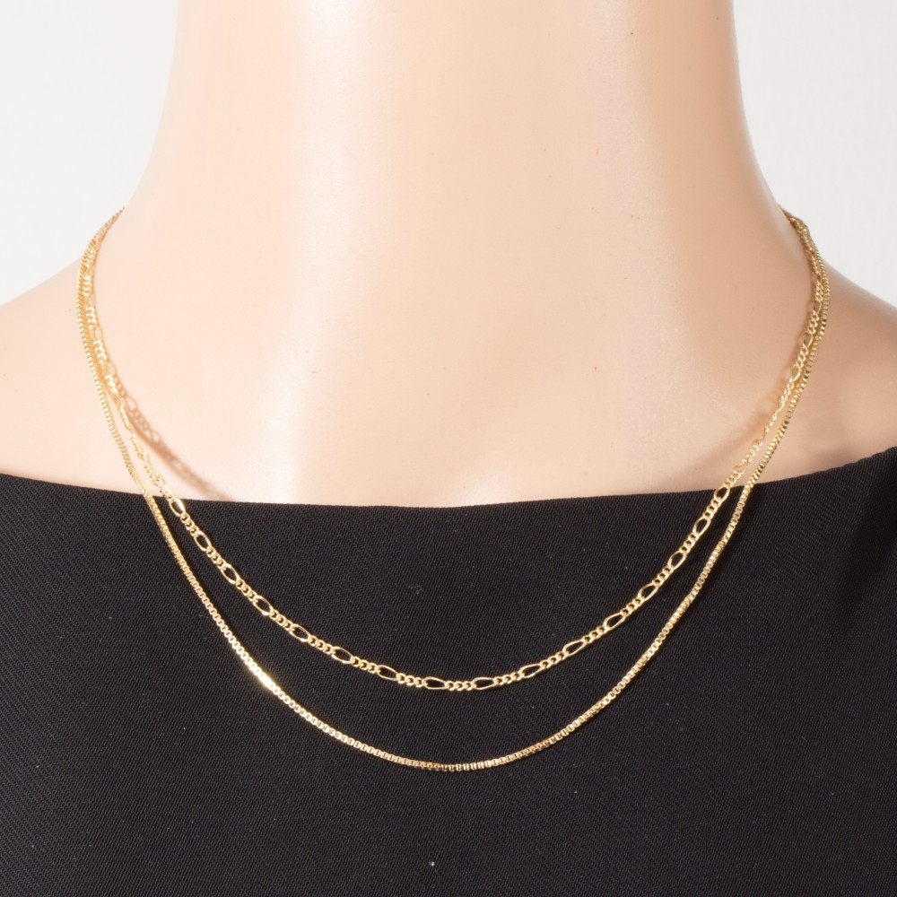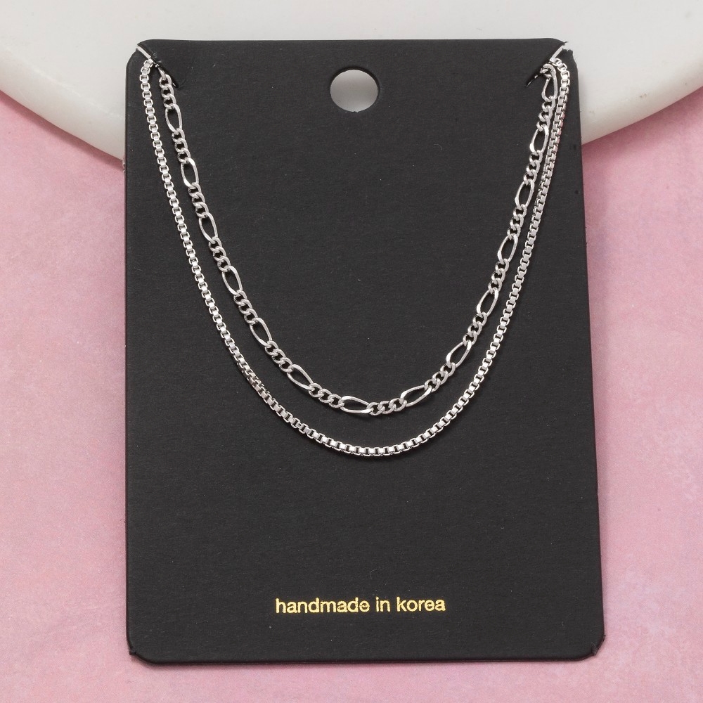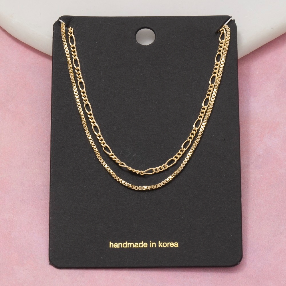 - Effortlessly chic and sophisticated, this chain necklace carries a charming double layer chian necklace design. Elevate your everyday style with this versatile chain necklace, a simple yet impactful addition to your fashion repertoire. Available in G, S. This item is sold in packs of 1.