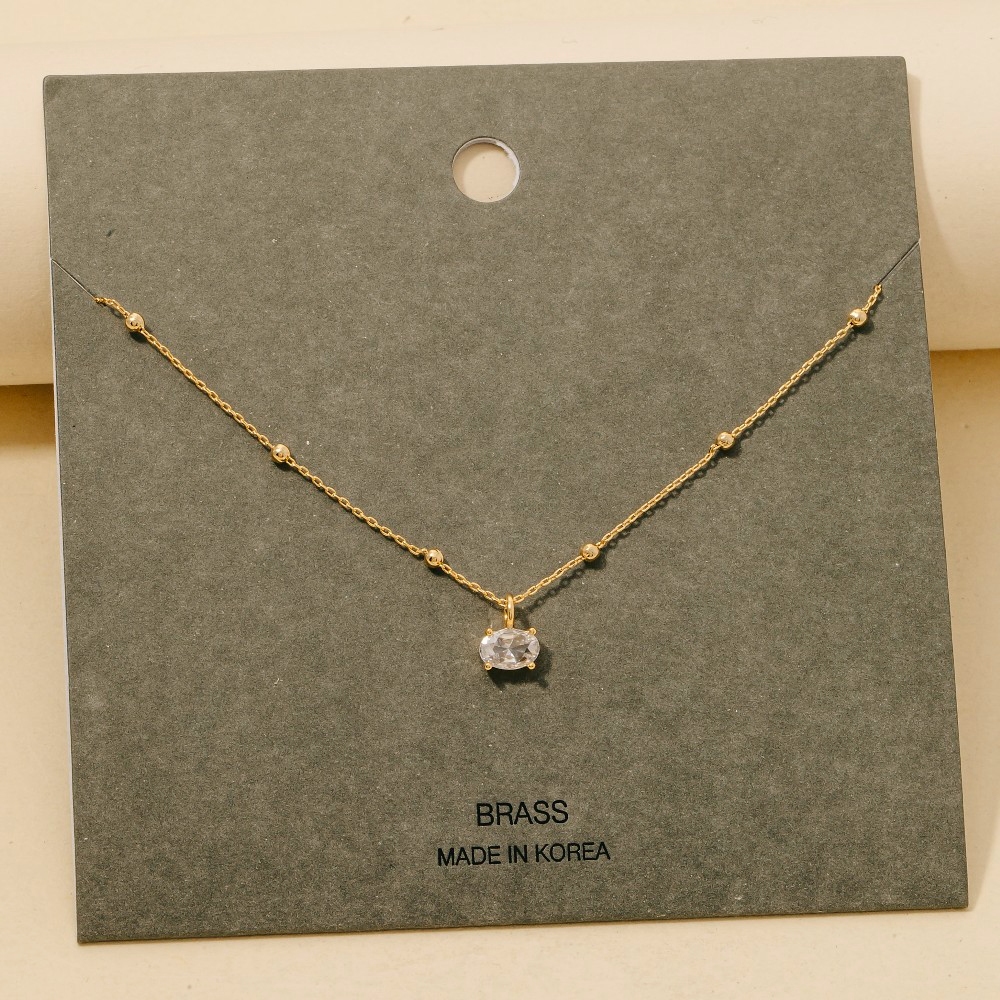 - An instant wardrobe staple, this chain necklace showcases an alluring faceted oval gem pendant station bead design. This chain necklace is ideal for both casual and formal events, adding a touch of sophistication to any outfit. Available in GDCRY, RHCRY. This item is sold in packs of 1.
