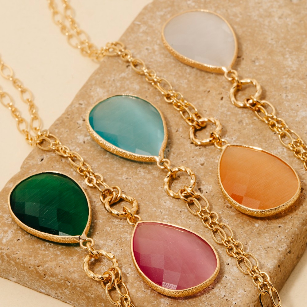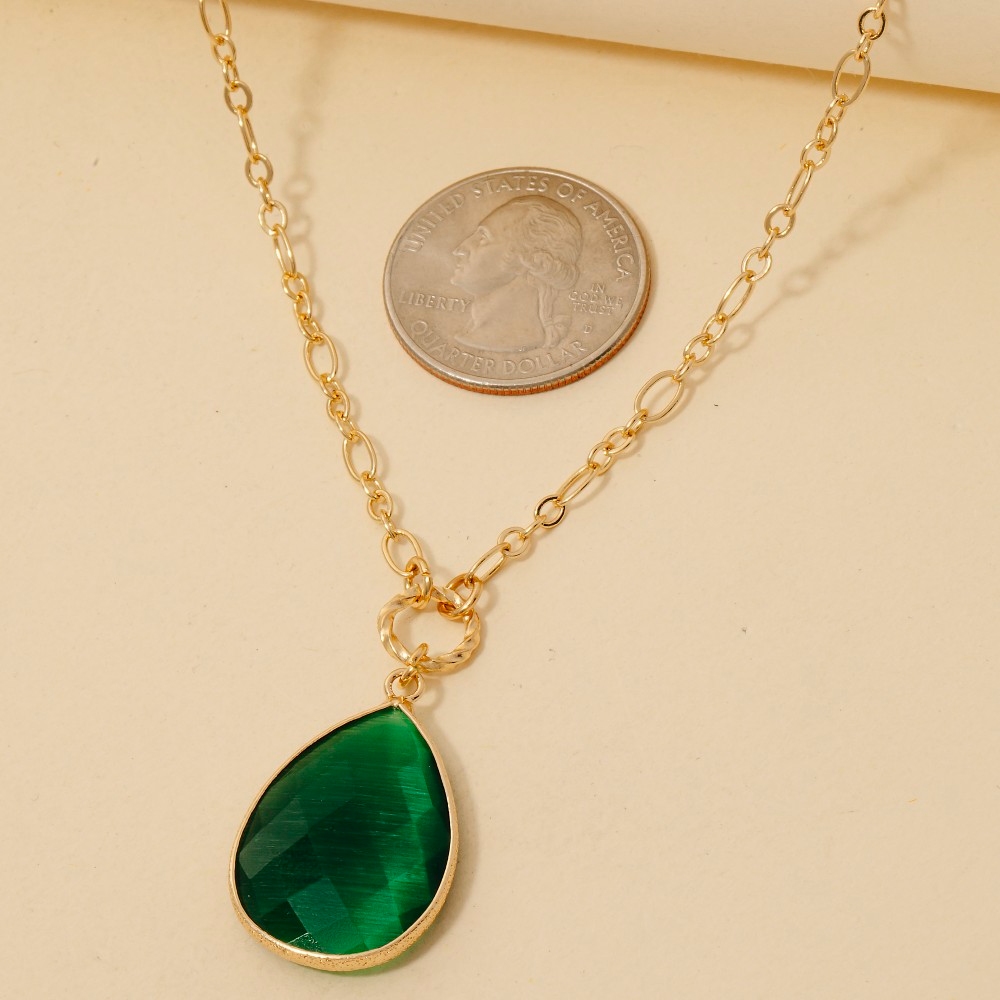A bold and daring choice, perfect for those who want to stand out from the crowd, this chain necklace introduces an exceptional faceted teardrop pendant design. Infuse a hint of luxury into your daily attire with this versatile chain necklace, a must-have for those who appreciate timeless elegance. Available in GDBEG, GDBL, GDEMD, GDPK, GDWHT. This item is sold in packs of 1.