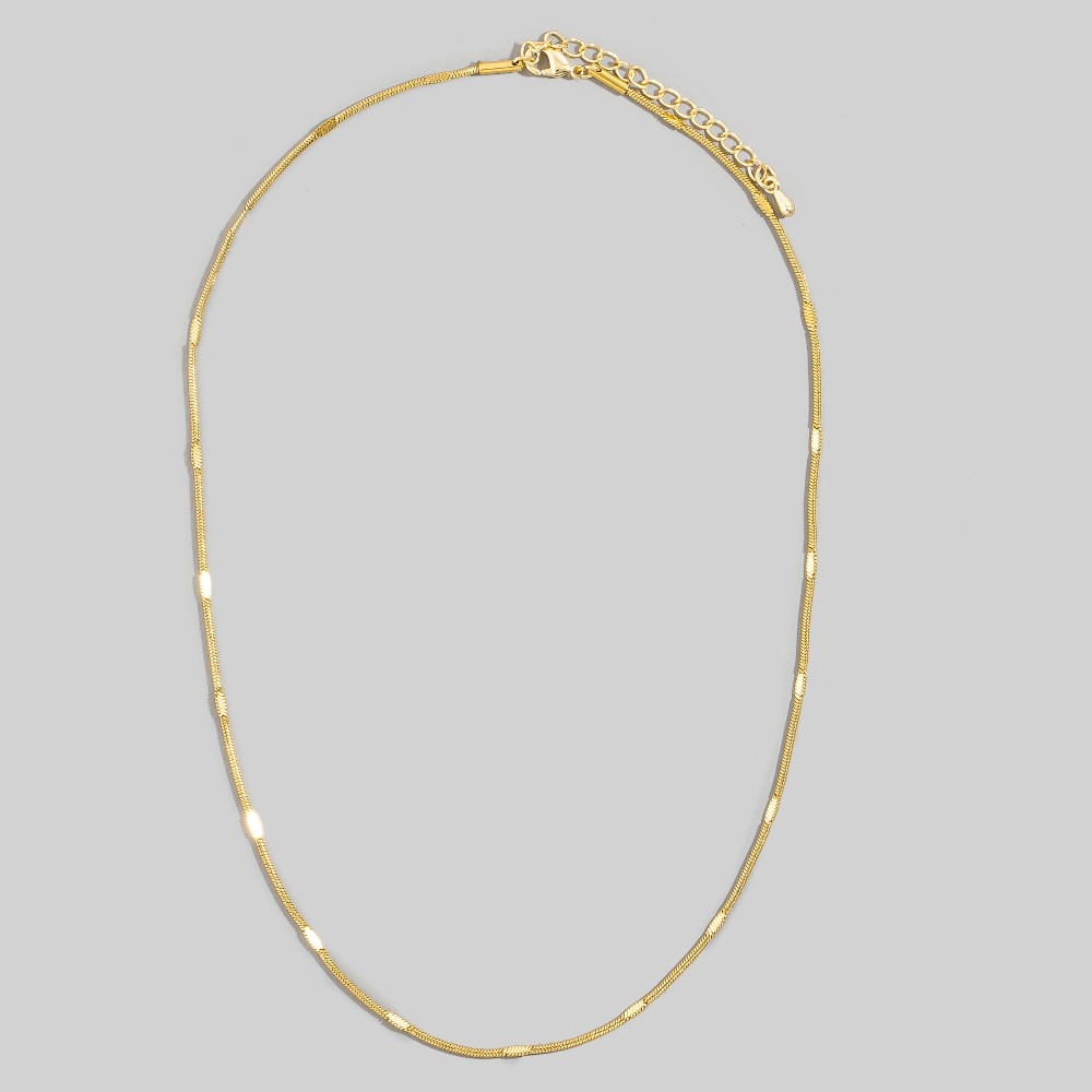• Chic, sophisticated, and always in style, this chain necklace incorporates a remarkable flat station pattern dainty design. Perfect for adding some personality and flair to your wardrobe, this chain necklace is a must-have. Available in G. This item is sold in packs of 1.