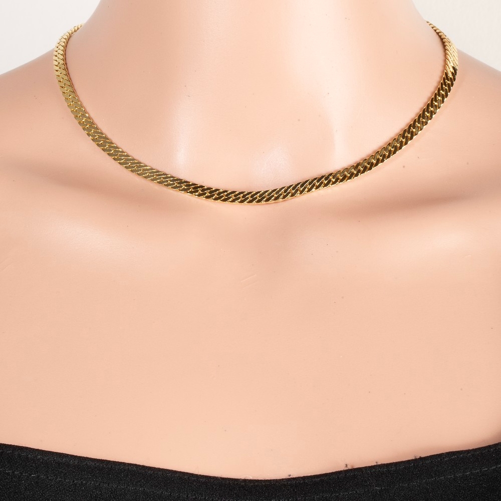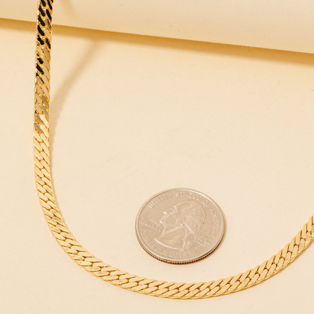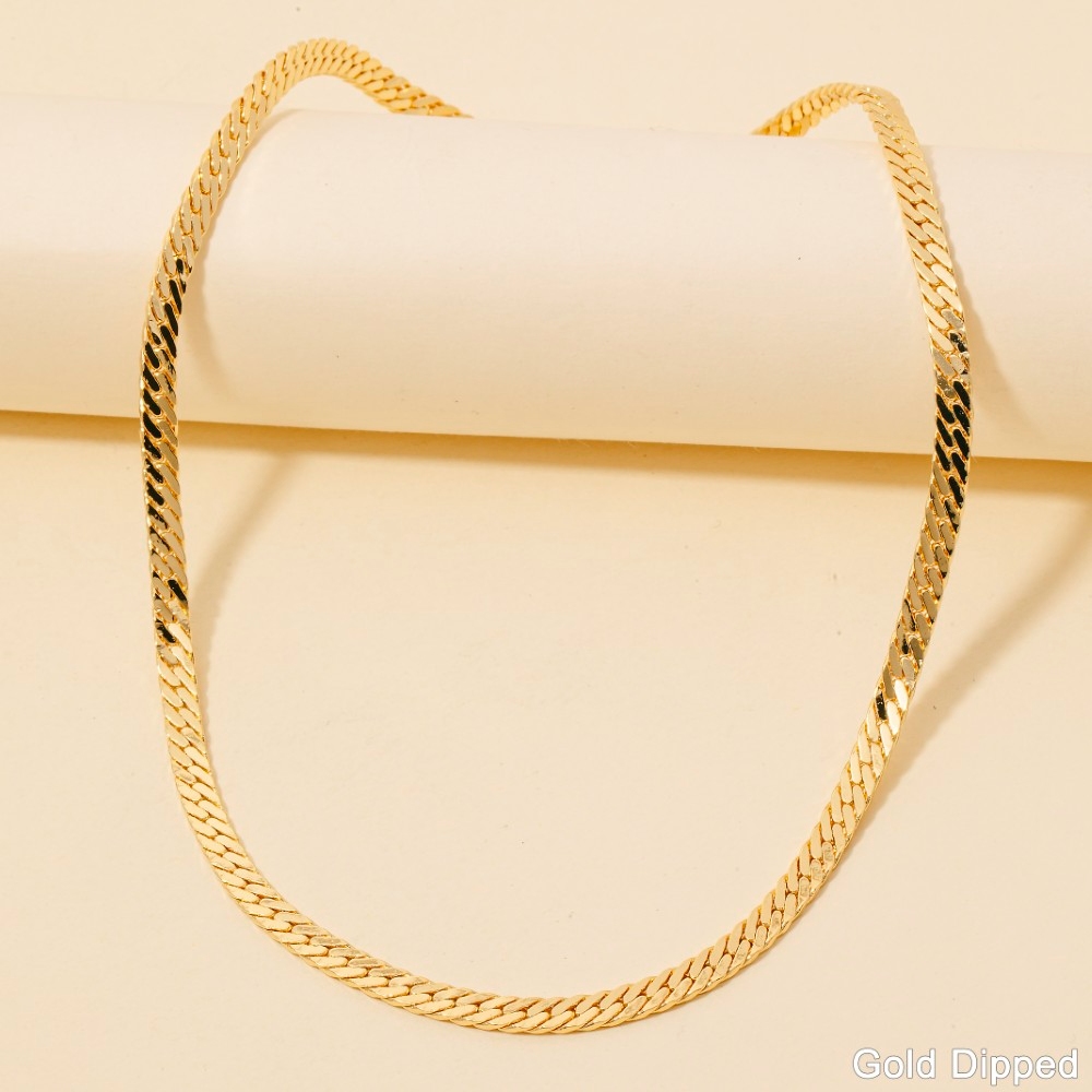 • This piece is both timeless and on-trend, this chain necklace exudes a refined gold dipped flat snake classic design. This chain necklace is the perfect way to add a touch of elegance to any outfit. Columbus Jewelry. This item is sold in packs of 1.