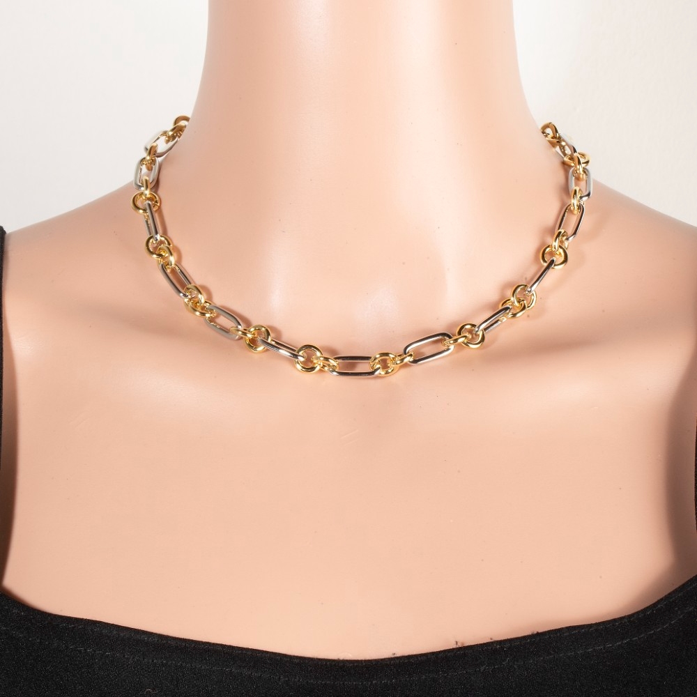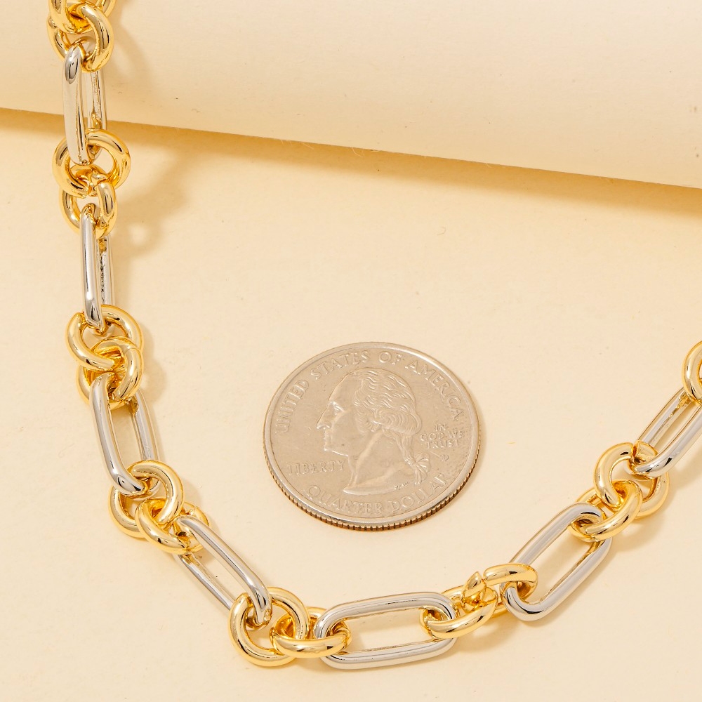 Stainless Steel Two Tone Chain Link Necklace