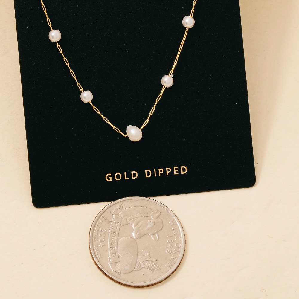 Add a touch of elegance and glamour to your look, this columbus jewelry necklace emanates an elegant gold dipped mini pearl station beads design. A perfect addition to your wardrobe that effortlessly enhances your style. Available in NO COLOR. This item is sold in packs of 1.