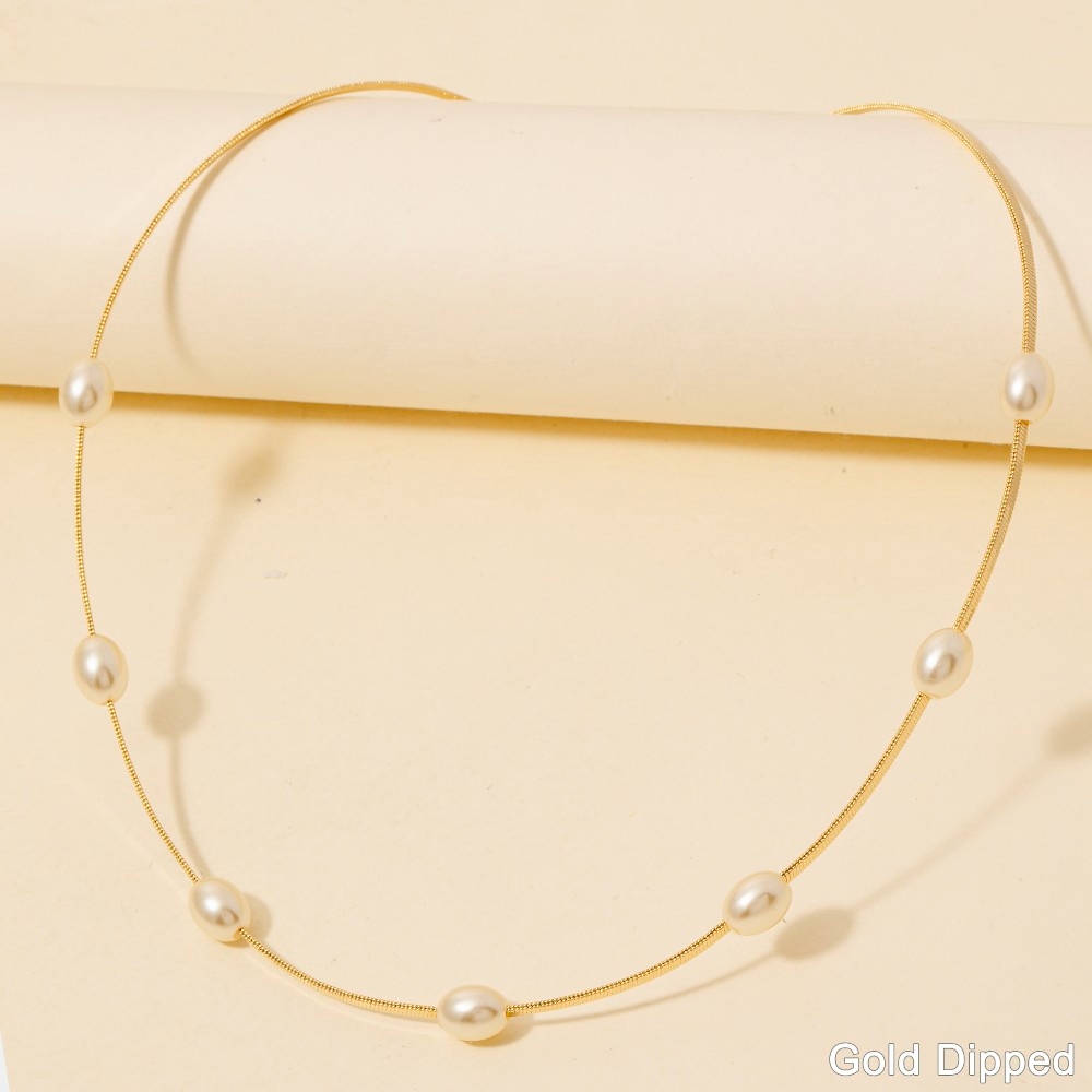 • This chain necklace is made with 50% Brass 50% Pearl.